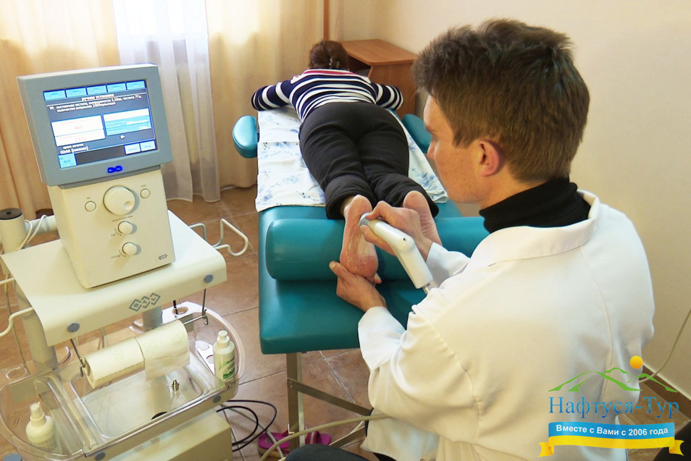 Ударно-волновая терапия – это один из очень широко используемых медиками и эффективных физиотерапевтических методов лечения заболеваний и травм костно-мышечной системы. В силу этого наиболее часто кабинеты УВТ имеются в тех санаториях, которые указывают в качестве своего основного профиля болезни суставов, позвоночника, а также реабилитацию после травм. Методика основана на воздействии звуковых волн низкой частоты (волны этого диапазона способны глубоко проникать в ткани) на поврежденные и вызывающие боли участки. Звуковые волны способны частично или полностью разрушать кальцинированные отложения, способствуют заживлению повреждений, улучшению тока лимфы и крови. Добавим, что значительное улучшение и уменьшение болей пациенты обычно ощущают уже после самой первой процедуры ударно-волновой терапии.