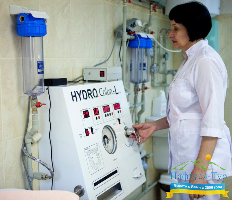 Гидроколонотерапия – разновидность клизмотерапии, когда в качестве клизмы используется специально созданная процедура, обеспечивающая очистку кишечника большим количеством (обычно для одного сеанса используется объем в несколько десятков литров) воды. По назначениям врача санатория для проведения процедуры может использоваться минеральная вода из определенного источника или специально приготовленный лекарственный раствор. В первую очередь гидроколонотерапию используют для лечения и профилактики заболеваний толстого кишечника, устранения запоров и диареи. Применяется методика и в ряде других случаев, в том числе для очистки кишечника перед проведением диагностики.