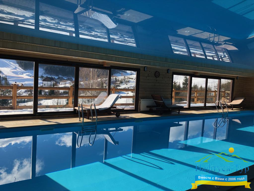 - наличие крытого бассейна