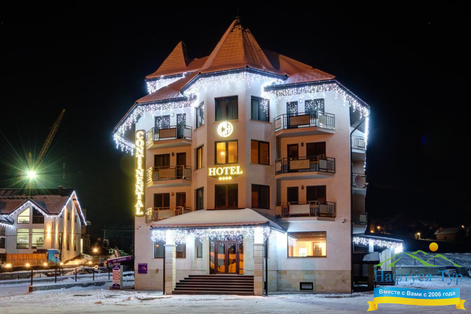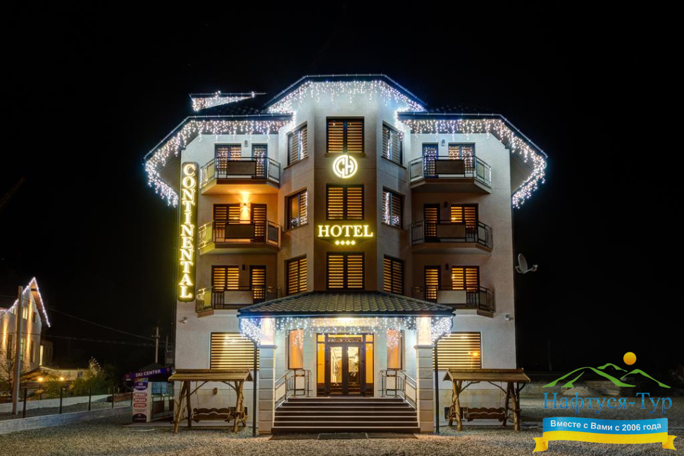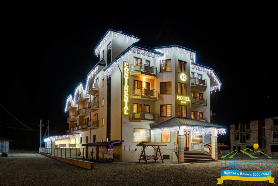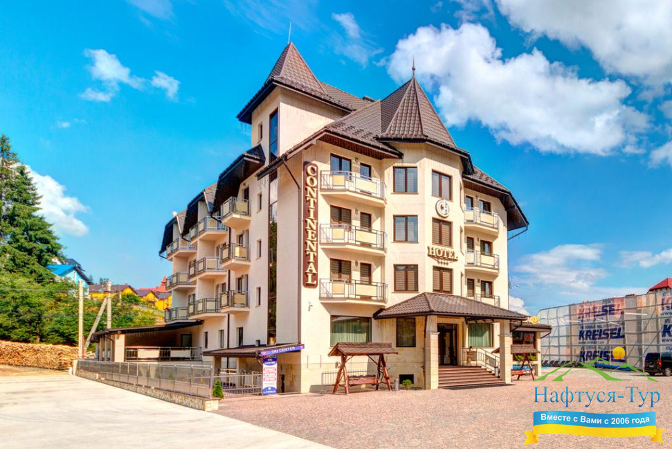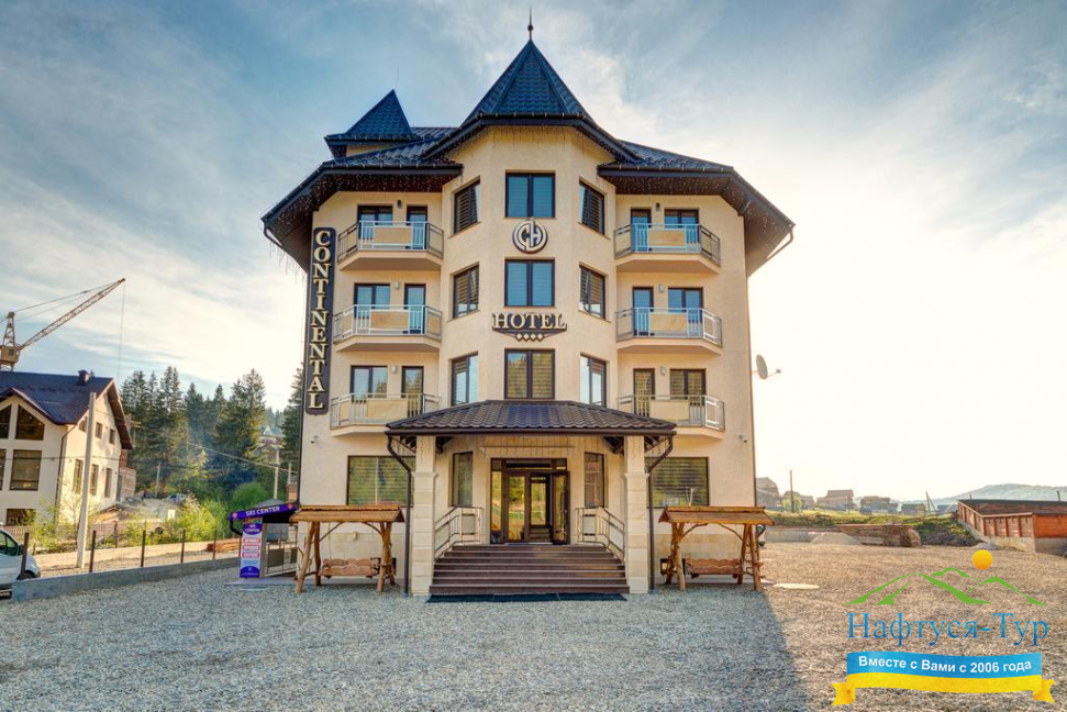 . Акции, скидки, отзывы о отеле Континенталь, как расположен отель на карте вы узнаете на нашем сайте. Так же вы можете ознакомиться с условиями проживания, дополнительными услугами в отеле Continental Буковель. Звоните, бронируйте и получайте удовольствие от обращения в нашу компанию и на официальный сайт Нафтуся-Тур.