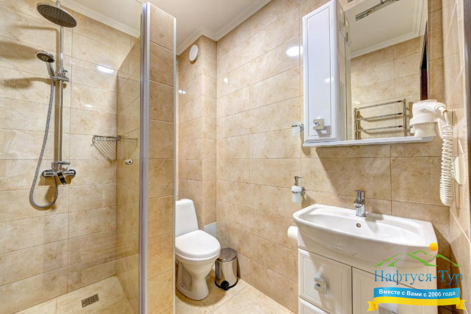 - душевая кабина, косметический набор, фен