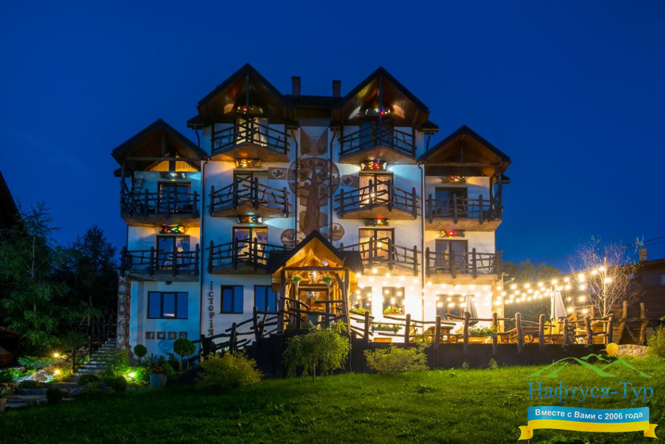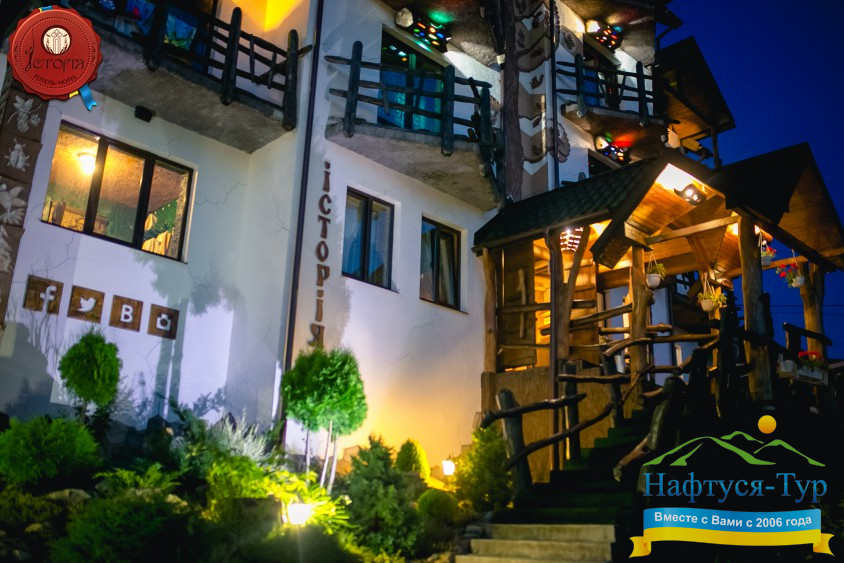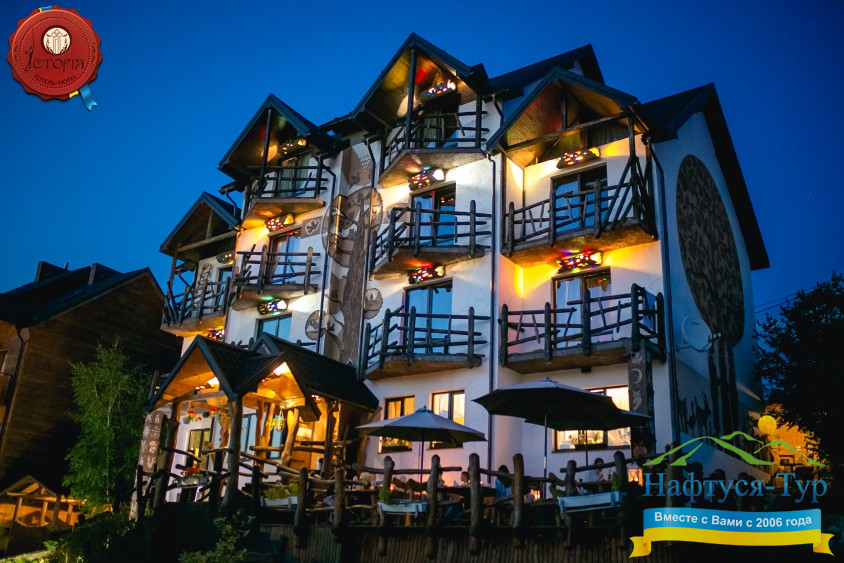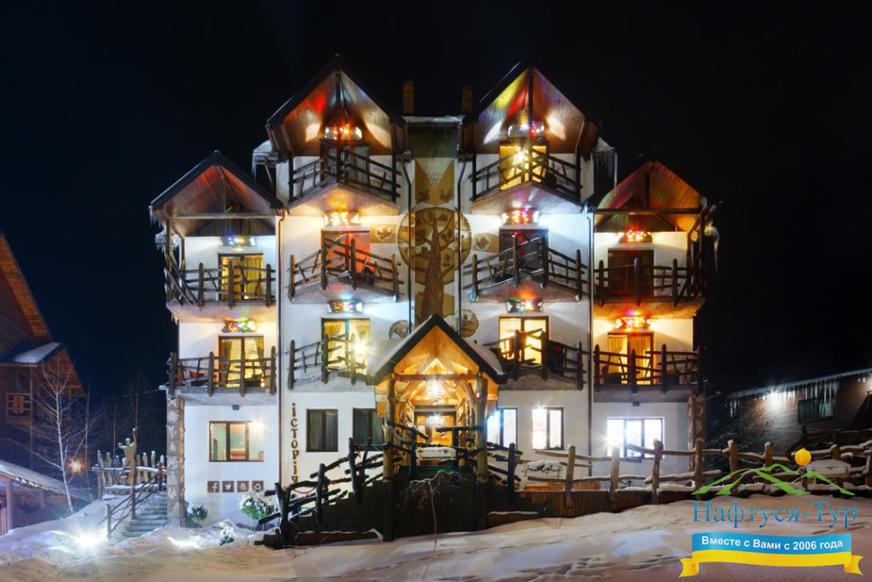 . Акции, скидки, отзывы о отеле История, как расположен отель на карте вы узнаете на нашем сайте. Так же вы можете ознакомиться с условиями проживания, дополнительными услугами в отеле История Буковель. Звоните, бронируйте и получайте удовольствие от обращения в нашу компанию и на официальный сайт Нафтуся-Тур.