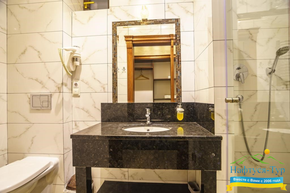 - душевая кабина, фен, косметический набор