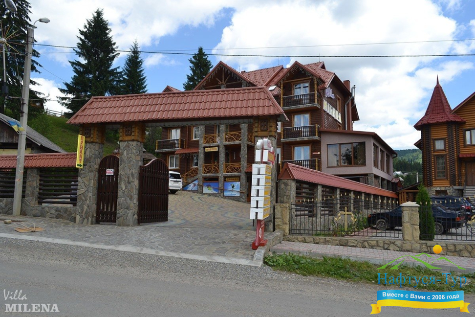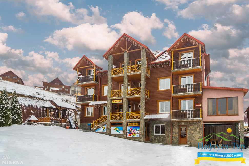 . Акции, скидки, отзывы о отеле Вилла Милена, как расположен отель на карте вы узнаете на нашем сайте. Так же вы можете ознакомиться с условиями проживания, дополнительными услугами в отеле Вилла Милена Буковель. Звоните, бронируйте и получайте удовольствие от обращения в нашу компанию и на официальный сайт Нафтуся-Тур.