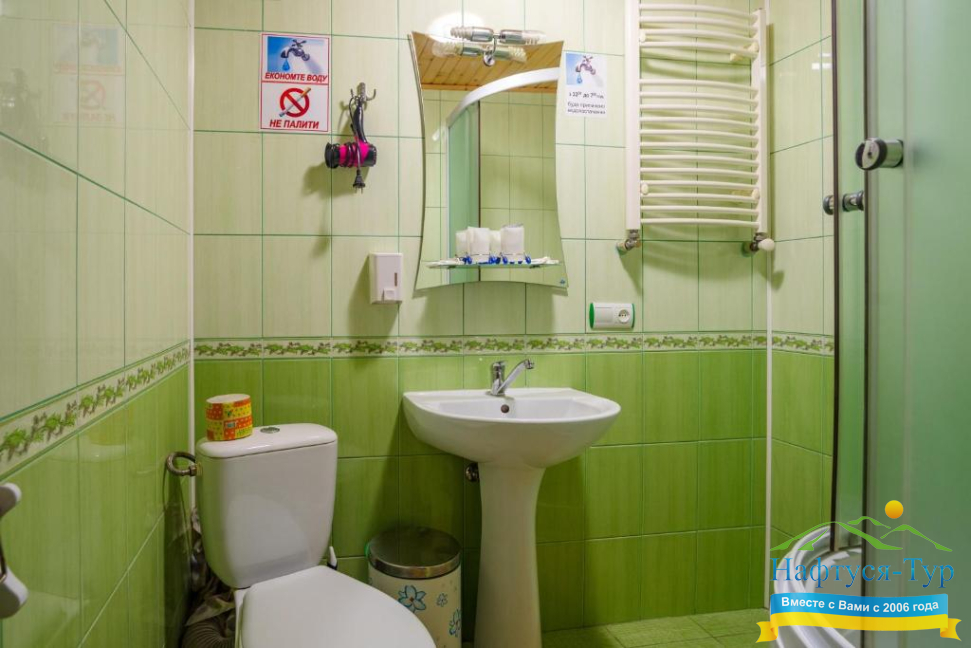 - душевая кабина, набор полотенец