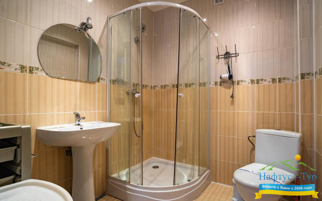 • душевая кабина, набор полотенец, фен