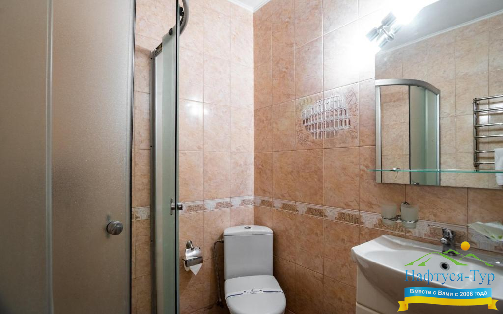 • душевая кабина, набор полотенец