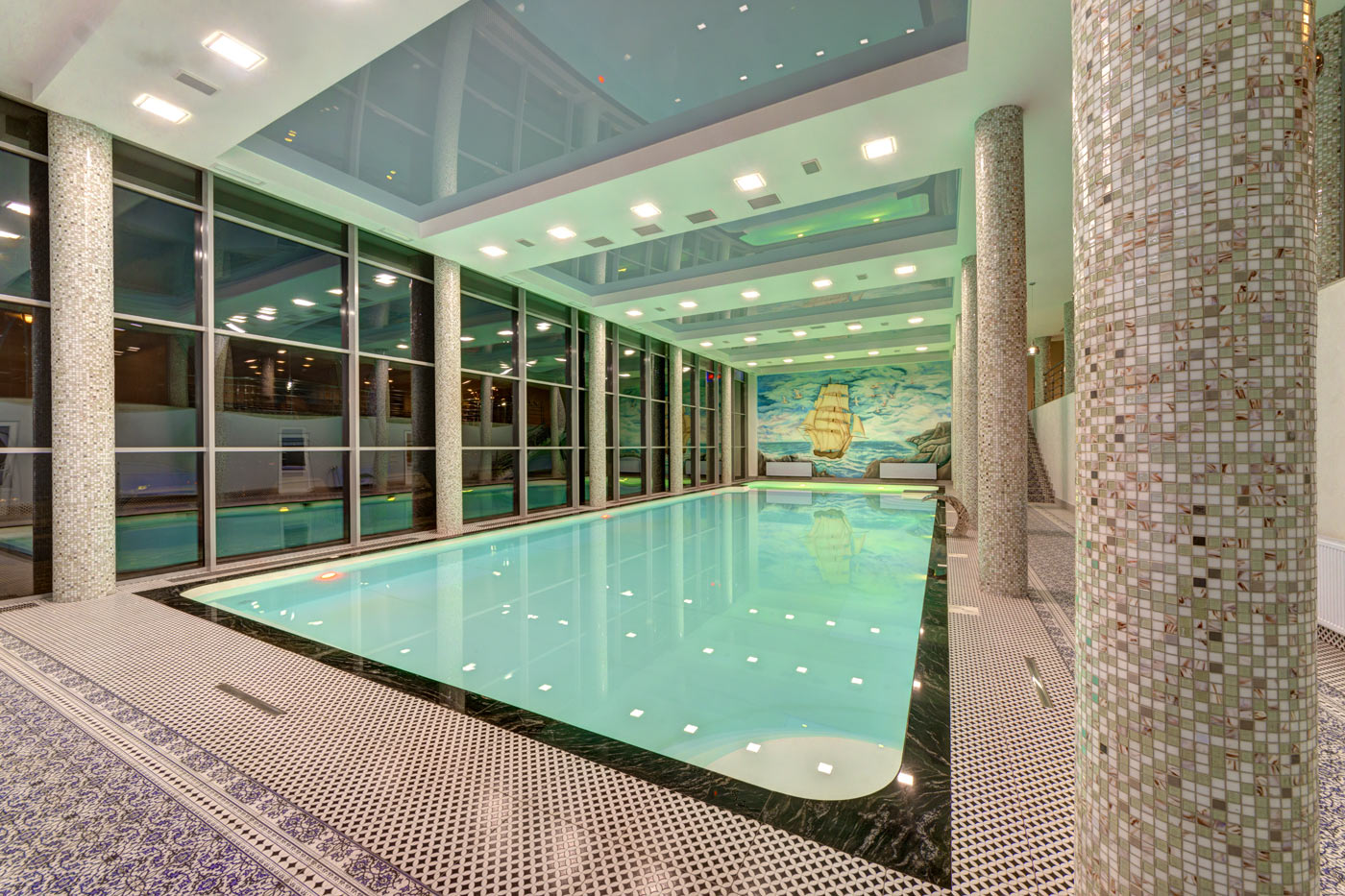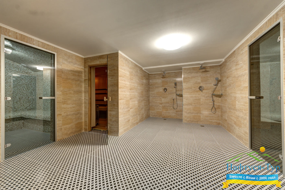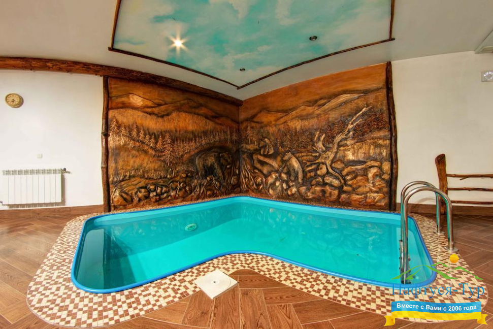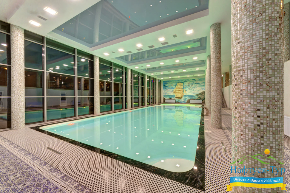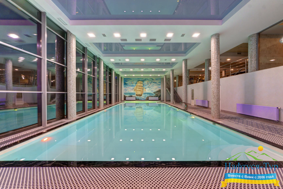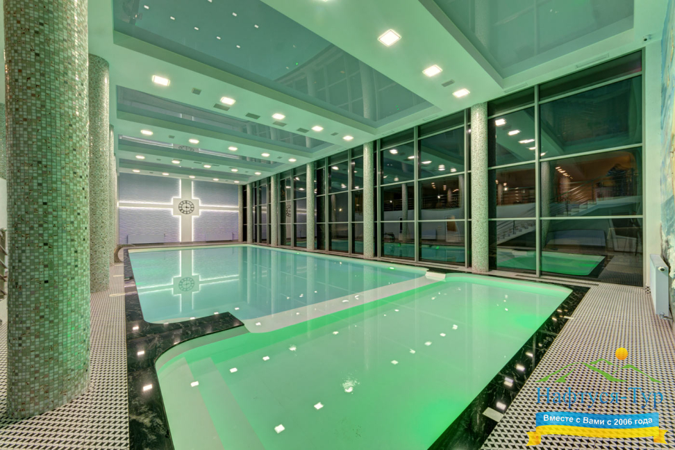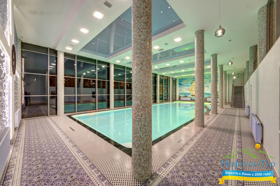 • Бассейн крытый, 20х7, вода пресная, входит в стоимость. Хамам, сауна, парная.
