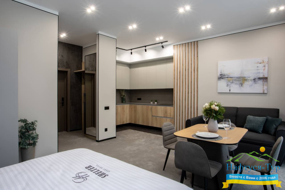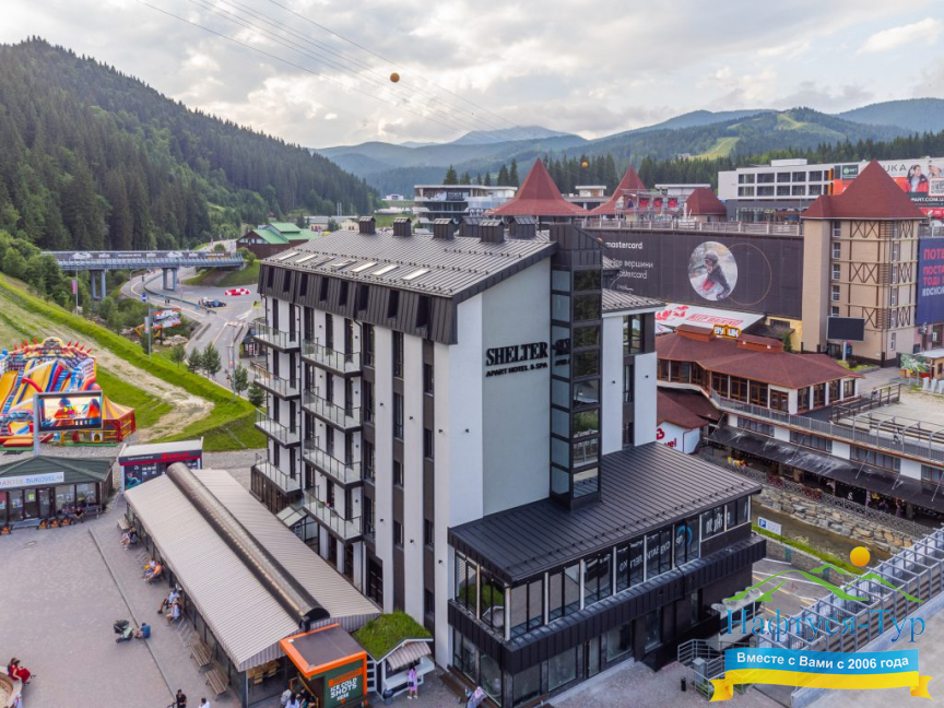 . Акции, скидки, отзывы о отеле Шелтер, как расположен отель на карте вы узнаете на нашем сайте. Так же вы можете ознакомиться с условиями проживания, дополнительными услугами в отеле Shelter Apart Hotel Буковель. Звоните, бронируйте и получайте удовольствие от обращения в нашу компанию и на официальный сайт Нафтуся-Тур.
