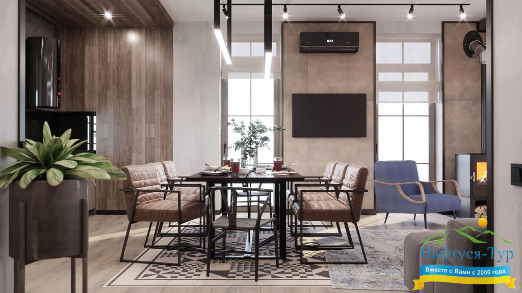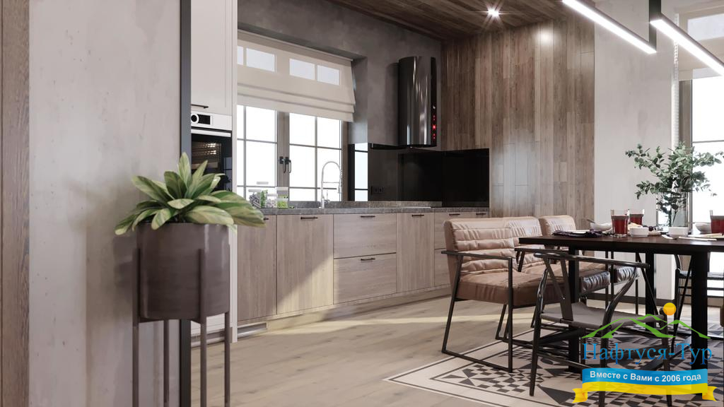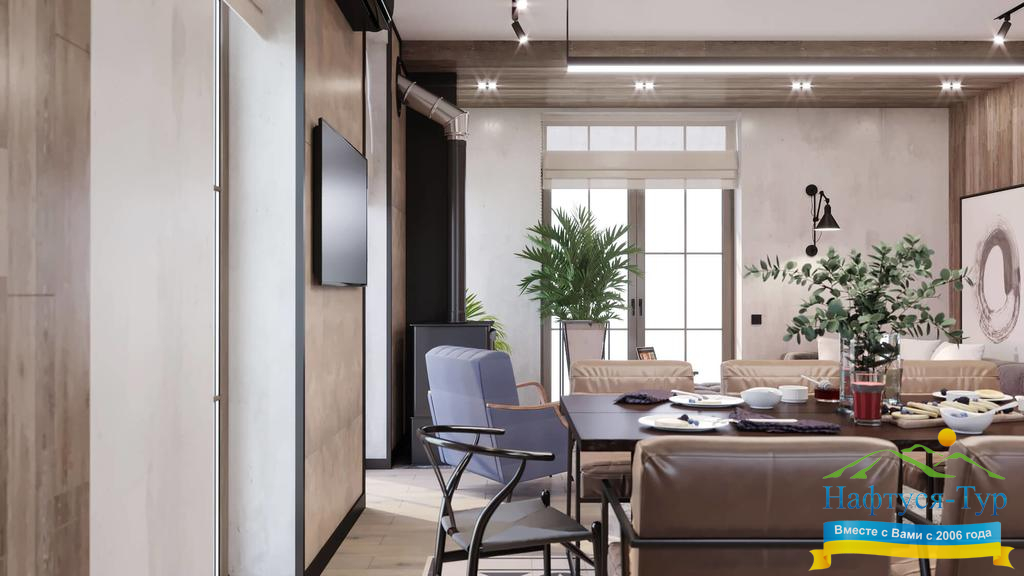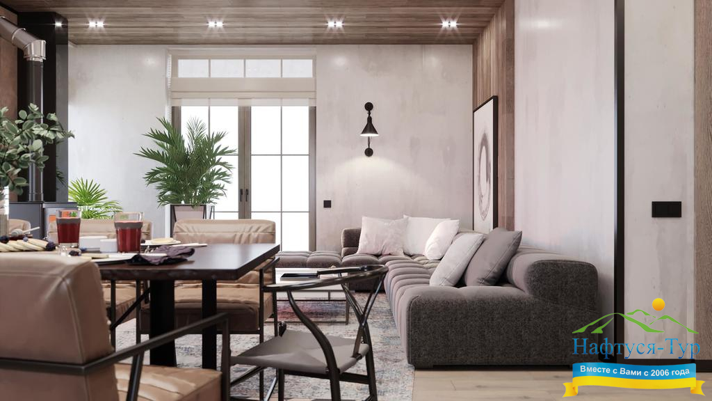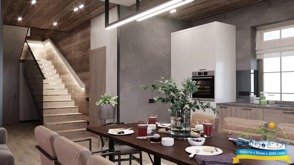 Это современный, просторный дом в котором комфортно разместиться компании из 8-ми человек.