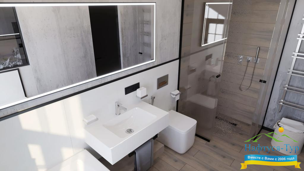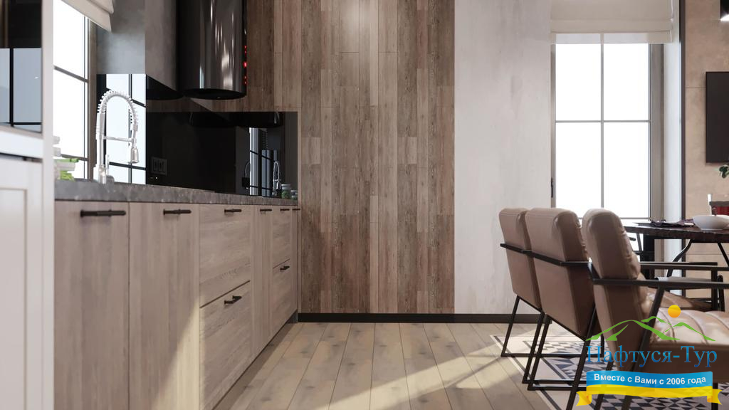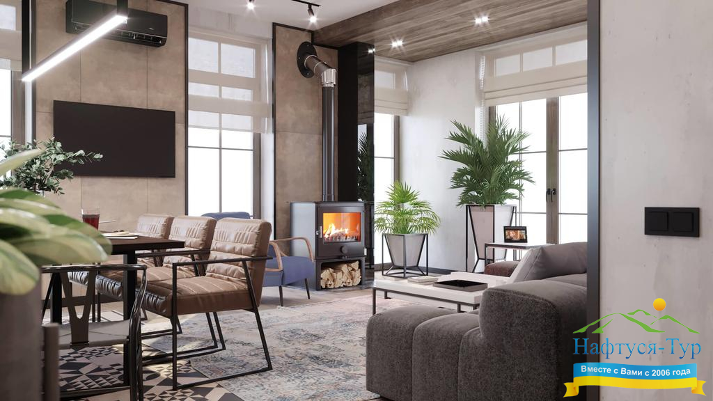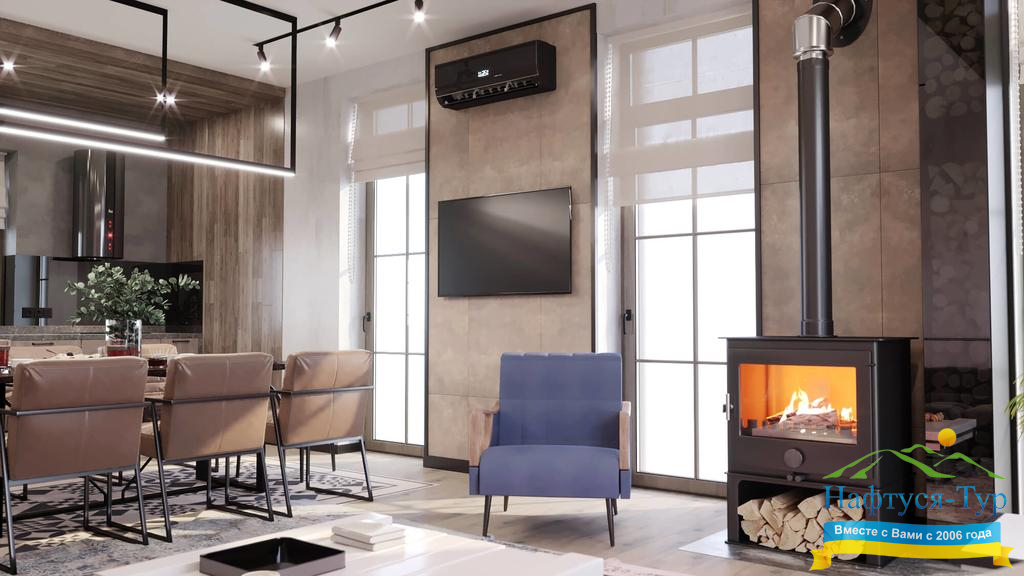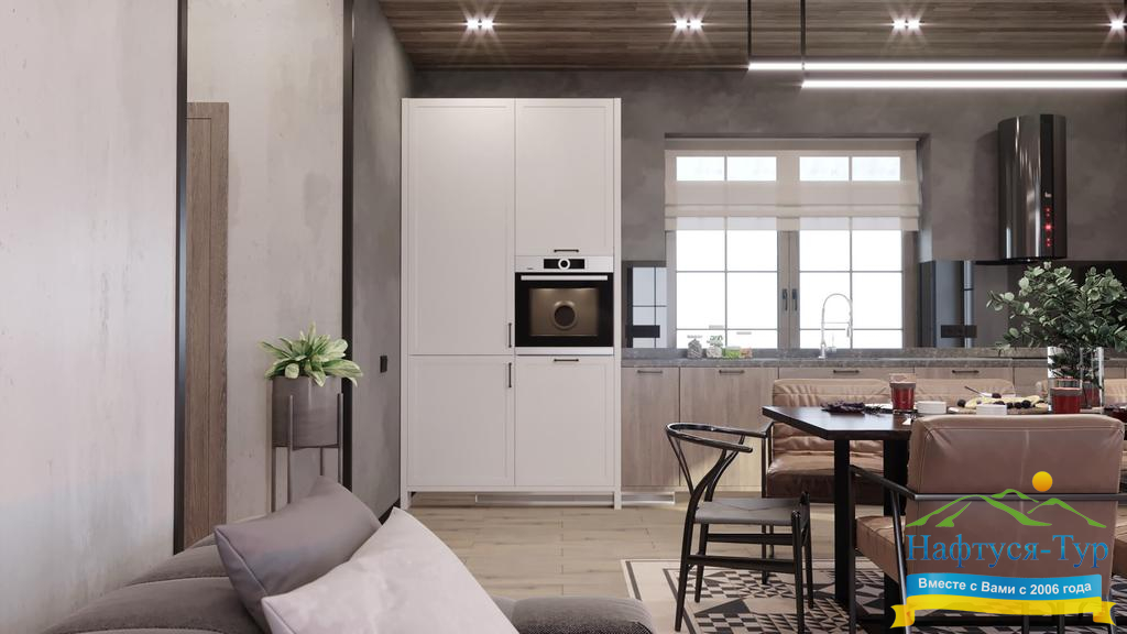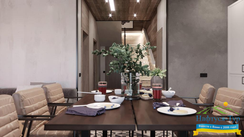 Это современный, просторный дом в котором комфортно разместиться компании из 8-ми человек.