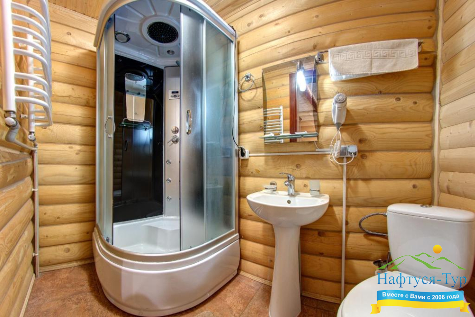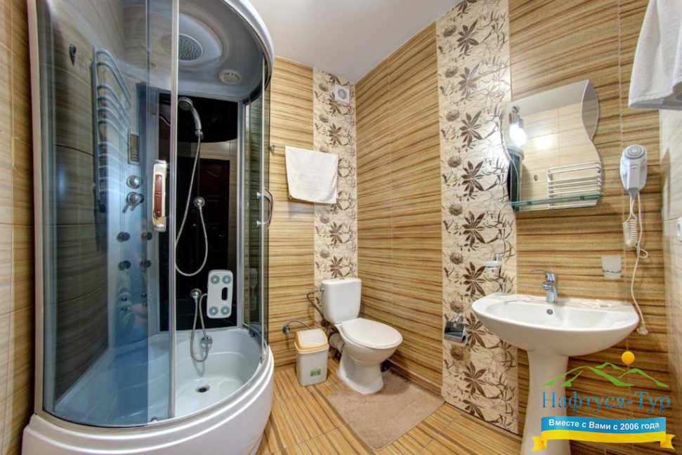 - душевая кабина, фен, косметический набор