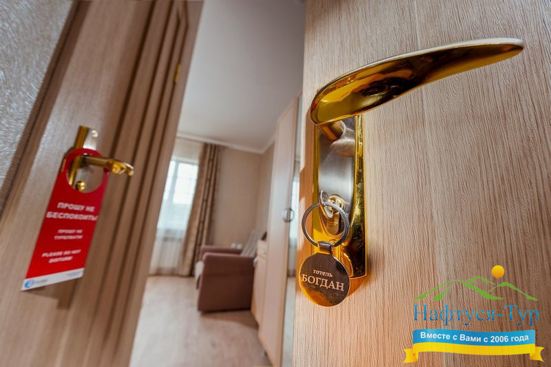 Отель «Богдан» - новый, комфортабельный отель в классическом стиле, расположенный в центральной части известного курорта Моршин.  В отеле 36 однокомнатных и двухкомнатных уютных номеров, оснащенных всем необходимым для прекрасного отдыха. - бювет минеральных вод на территории отеля, прием воды – бесплатно; - бесплатная автостоянка для посетителей отеля, ресторана, бара; - бесплатный Wi-Fi.