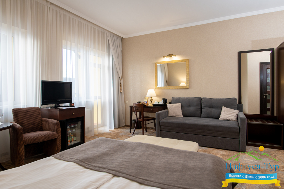 Выбирали полулюкс с двухспальной кроватью,и диван.Оказываетя у них кровати трансформеры??? Я такого ещё не видел,это треш!! Персонал при этом не возмутим : так сдвинем кровати,вы бы видели этот вариант.