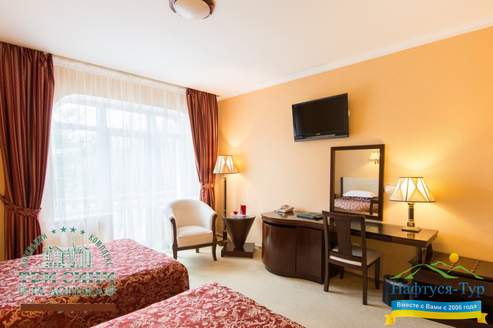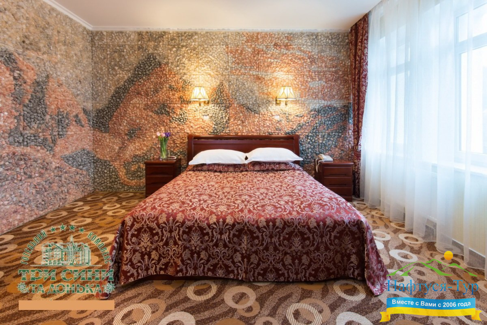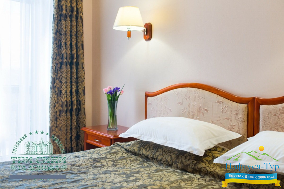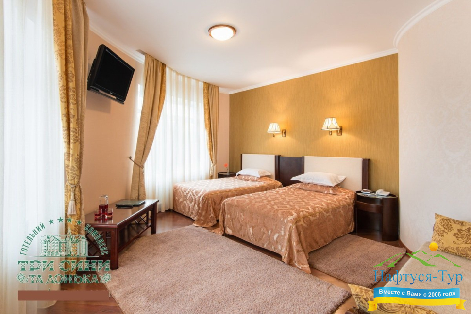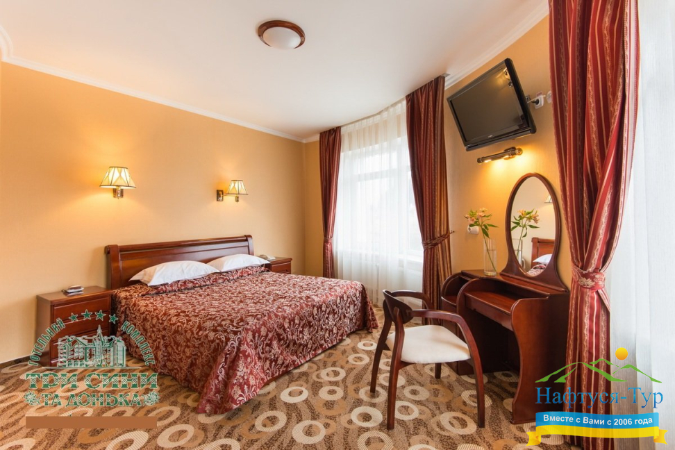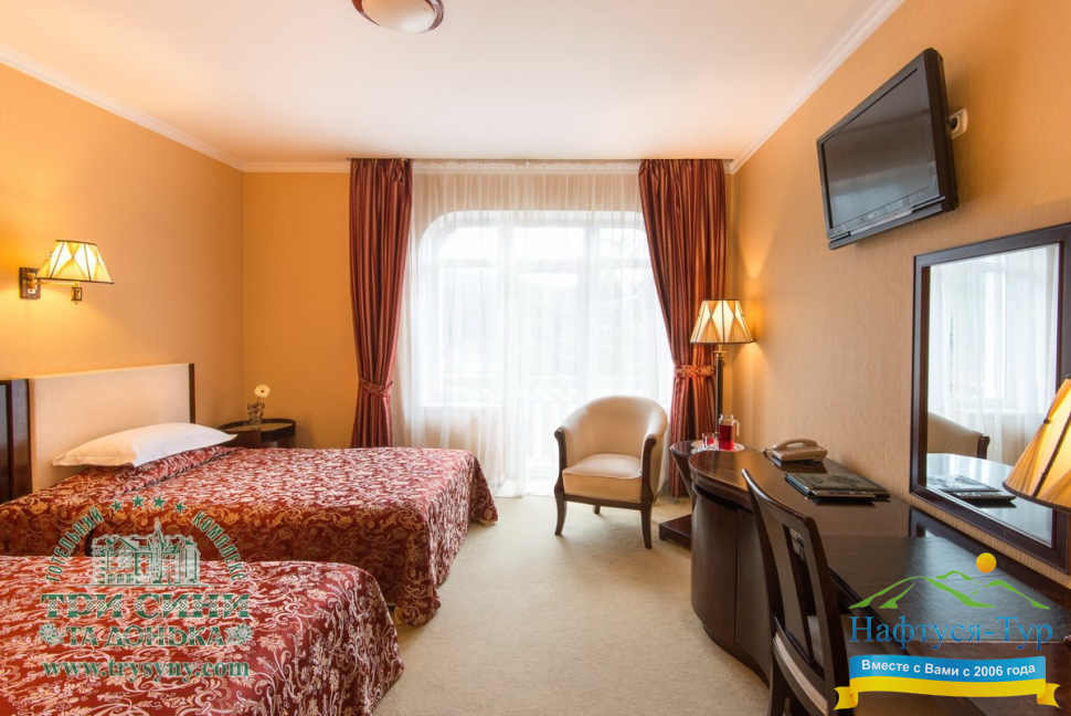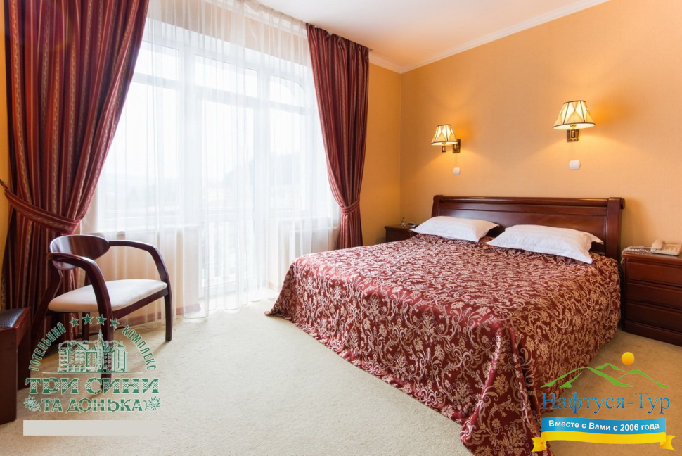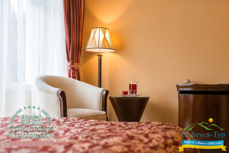 Курортный комплекс «Три Сини та Донька 4*» – наиболее известная и популярная здравница Сходницы. Благодаря большому выбору категорий номеров в санатории можно отдыхать и проходить курс лечения как на среднем, так и на элитном или премиальном уровне.