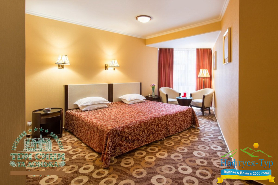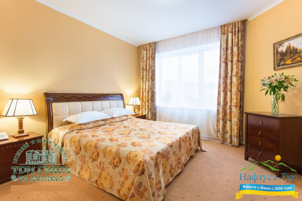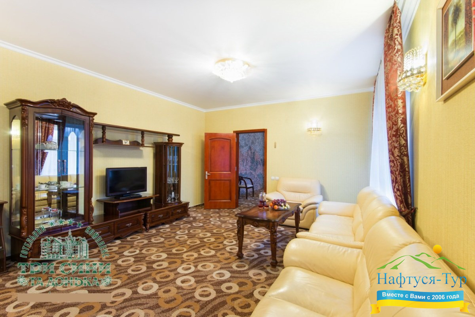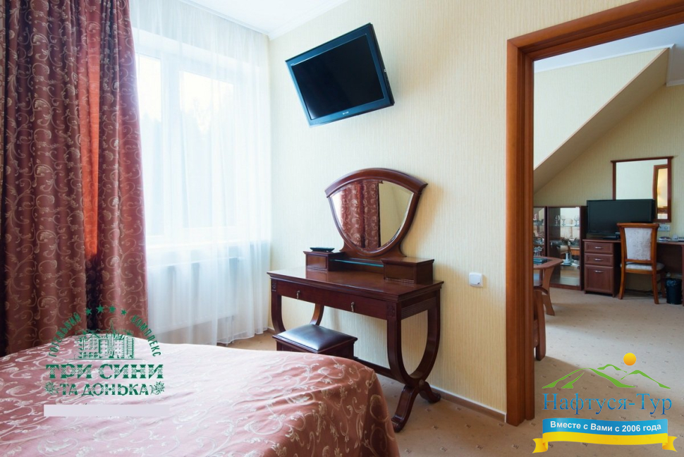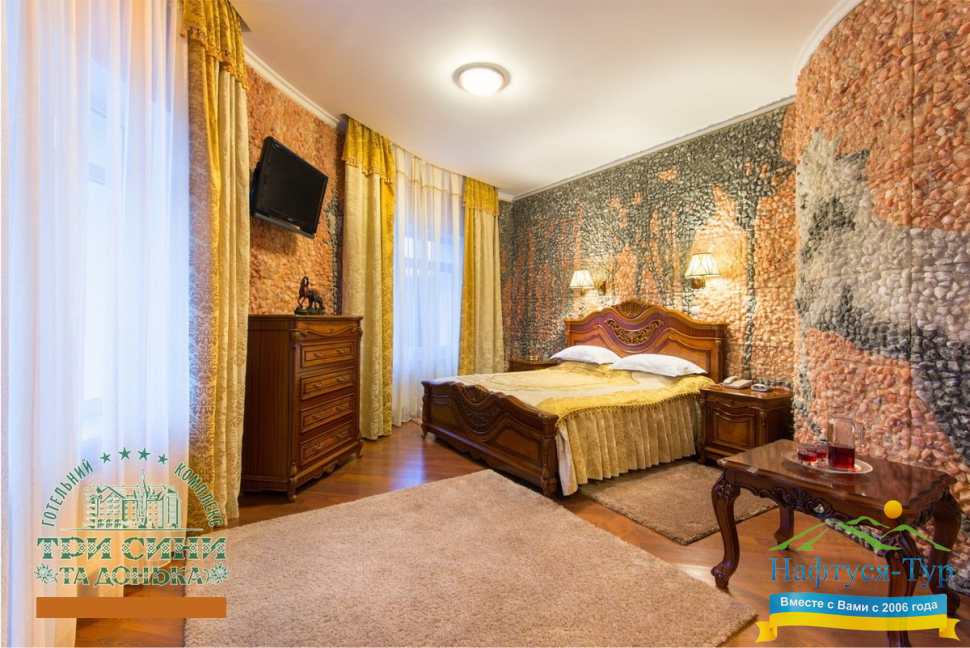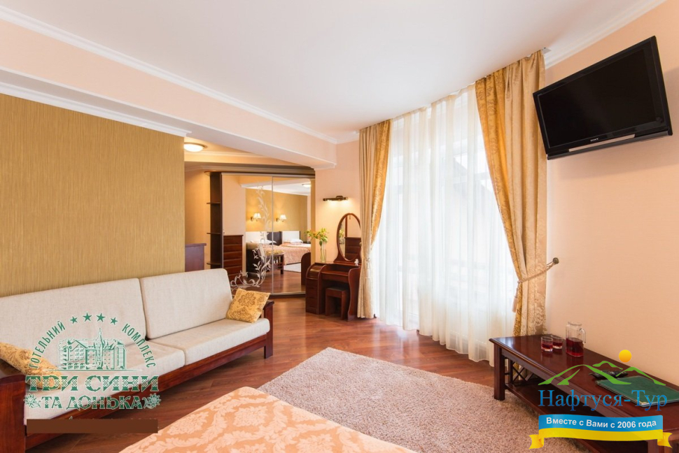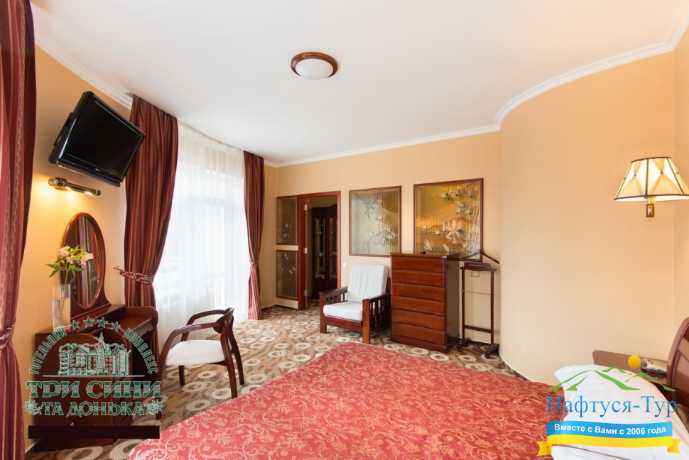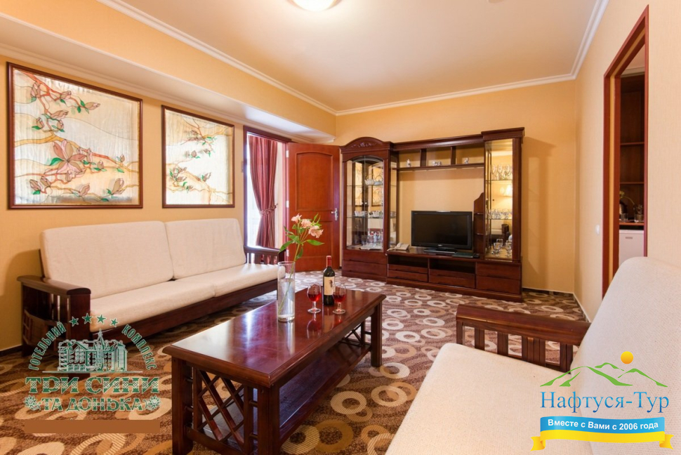 Курортный комплекс «Три Сини та Донька 4*» – наиболее известная и популярная здравница Сходницы. Благодаря большому выбору категорий номеров в санатории можно отдыхать и проходить курс лечения как на среднем, так и на элитном или премиальном уровне.