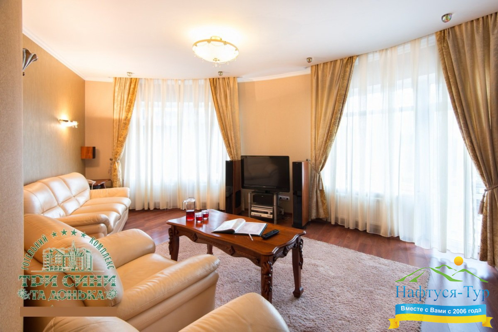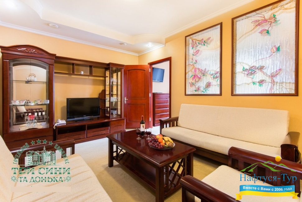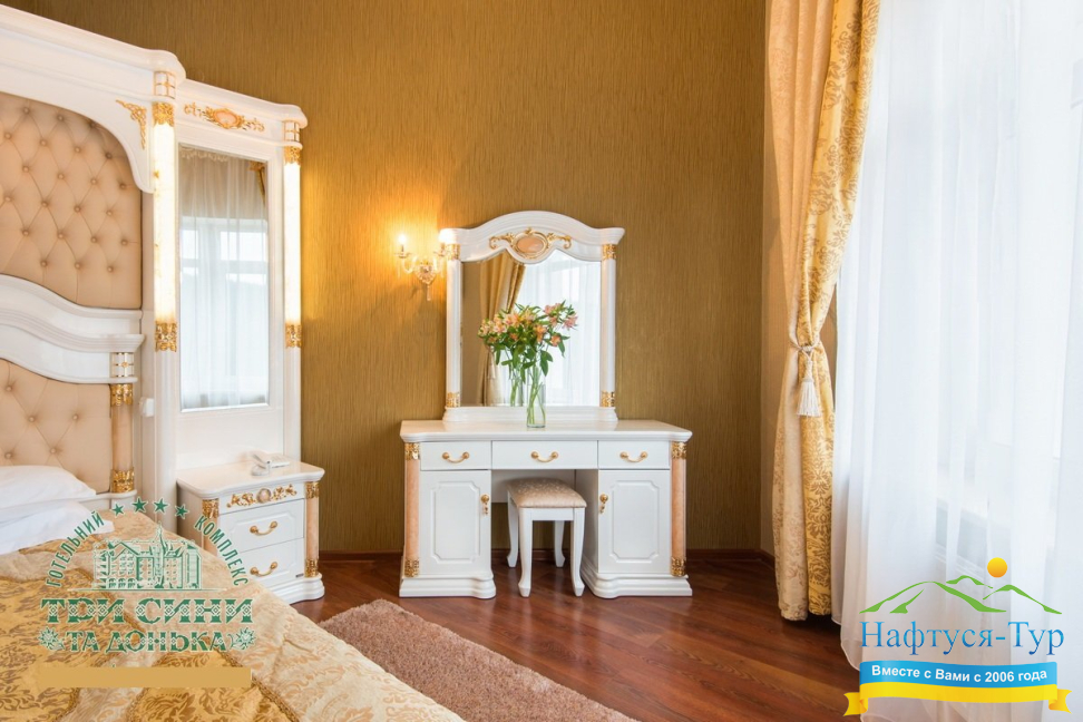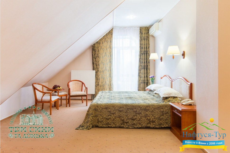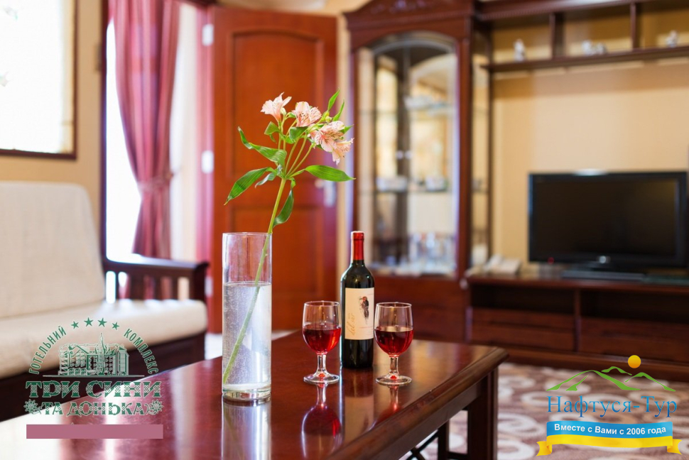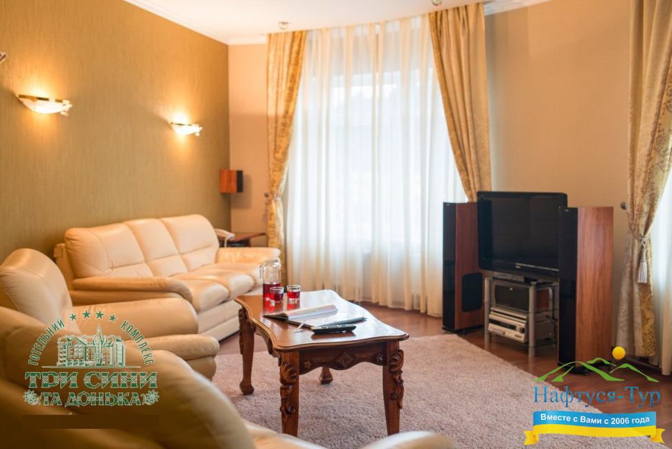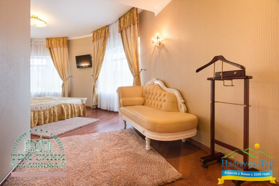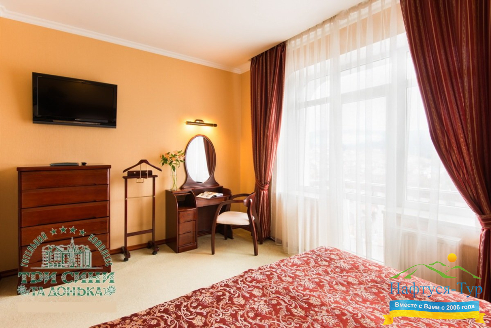 Курортный комплекс «Три Сини та Донька 4*» – наиболее известная и популярная здравница Сходницы. Благодаря большому выбору категорий номеров в санатории можно отдыхать и проходить курс лечения как на среднем, так и на элитном или премиальном уровне.