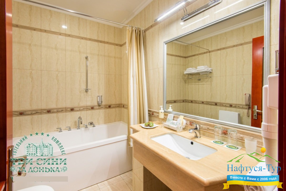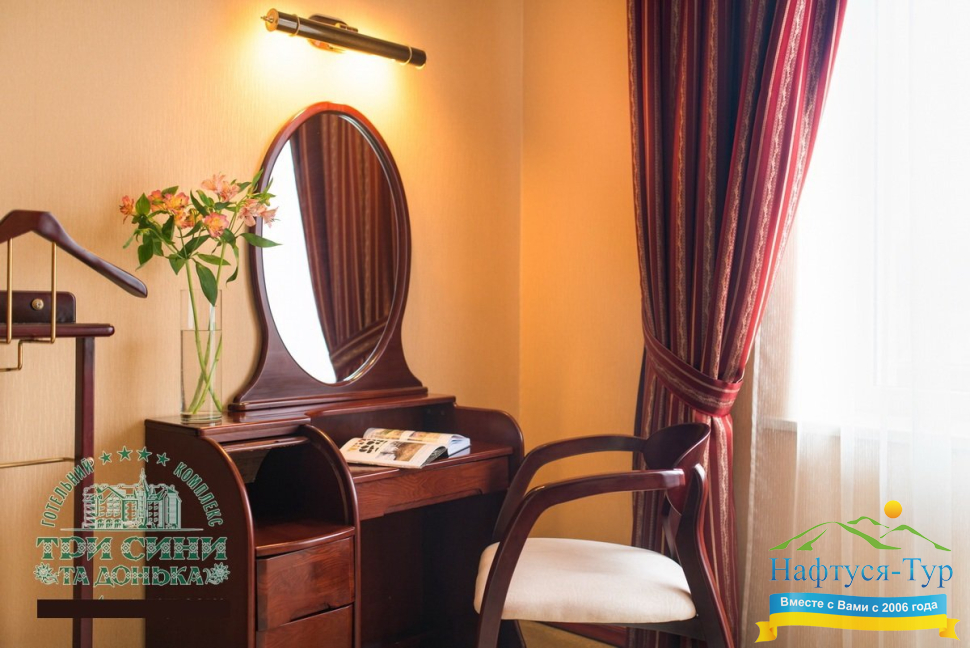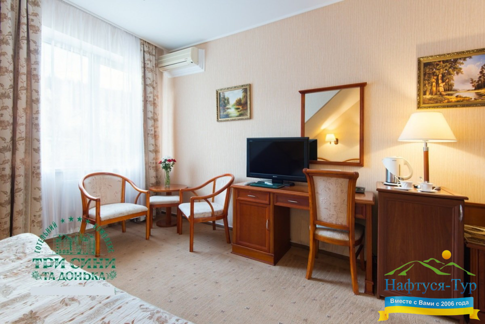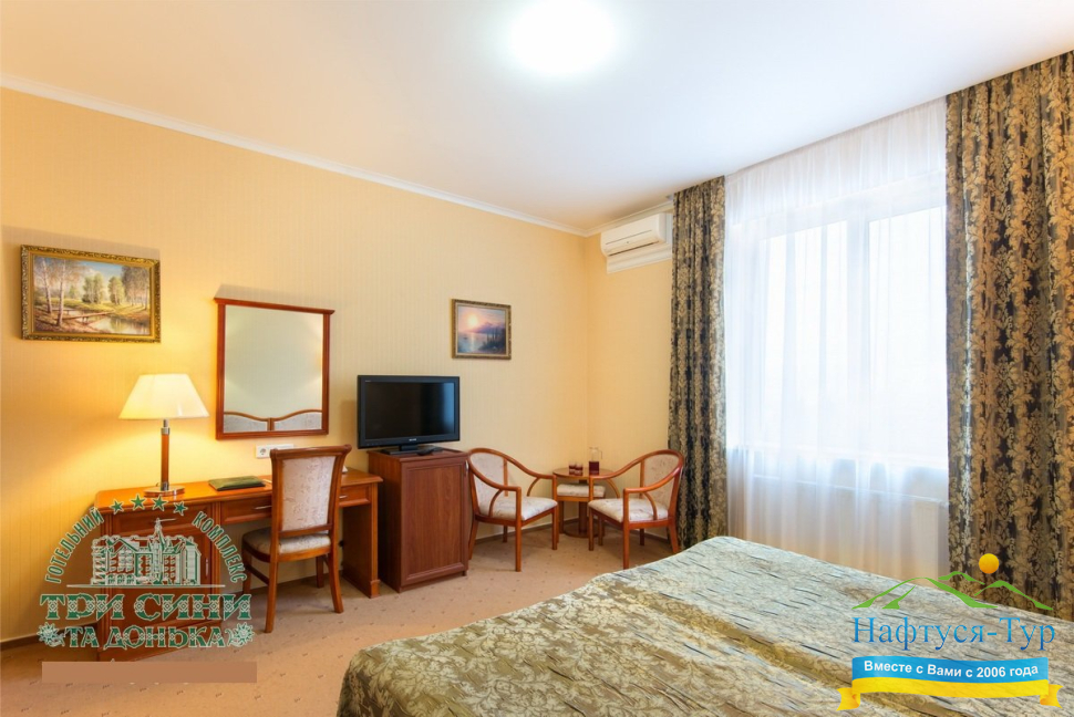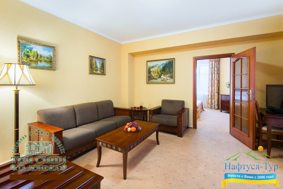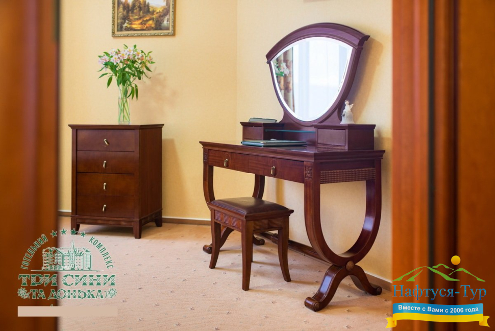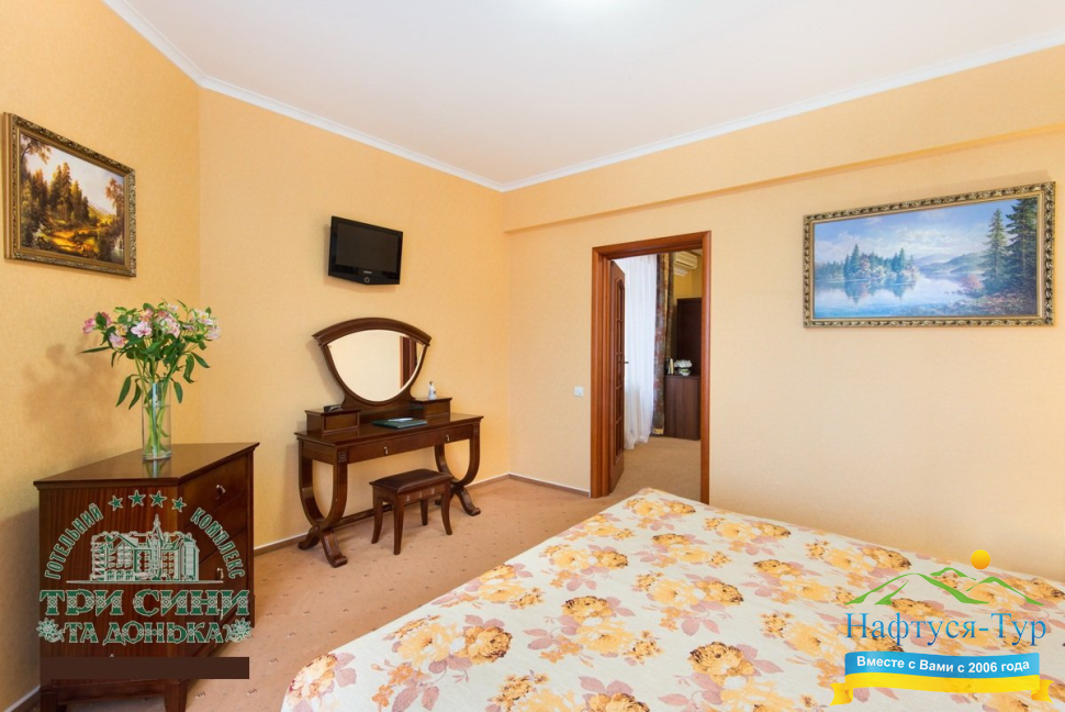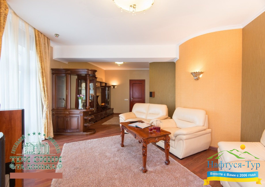 Курортный комплекс «Три Сини та Донька 4*» – наиболее известная и популярная здравница Сходницы. Благодаря большому выбору категорий номеров в санатории можно отдыхать и проходить курс лечения как на среднем, так и на элитном или премиальном уровне.