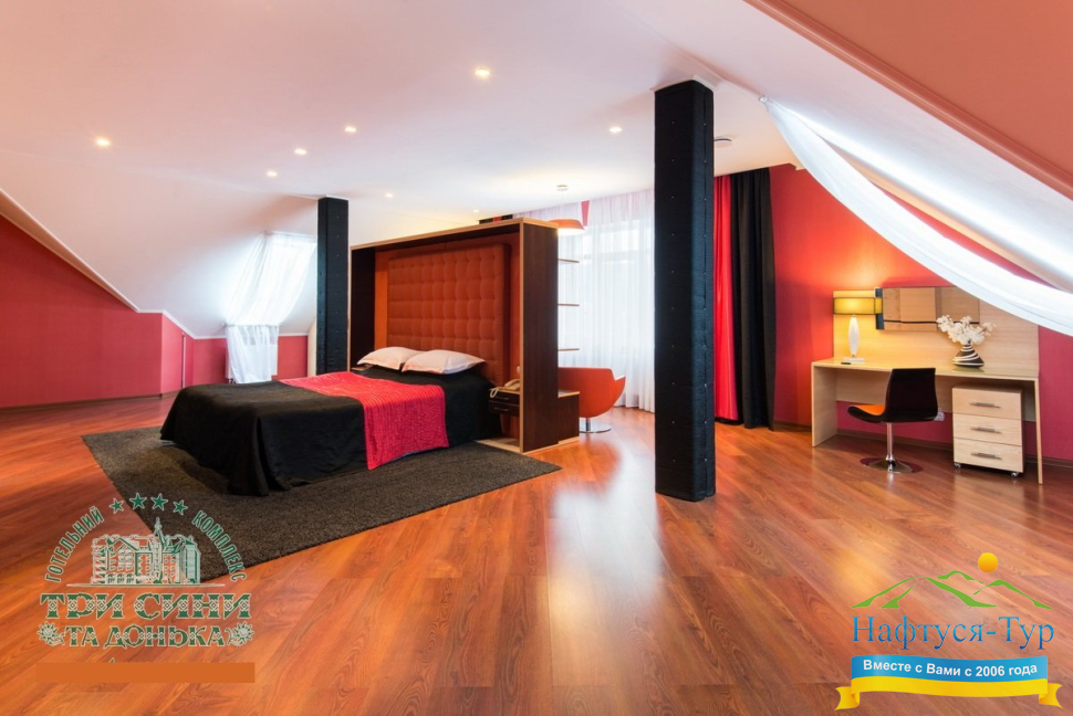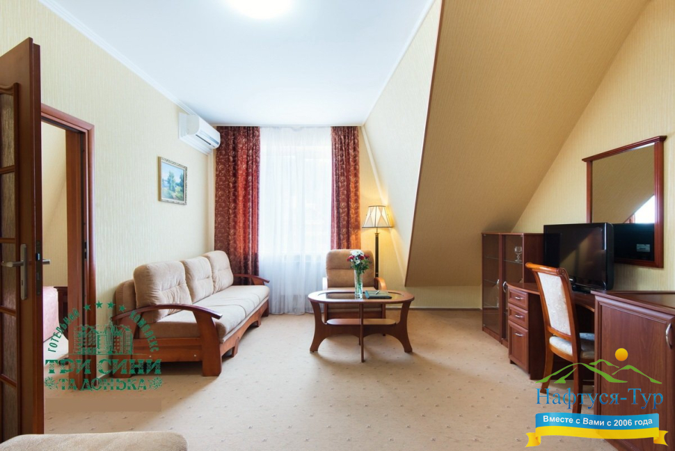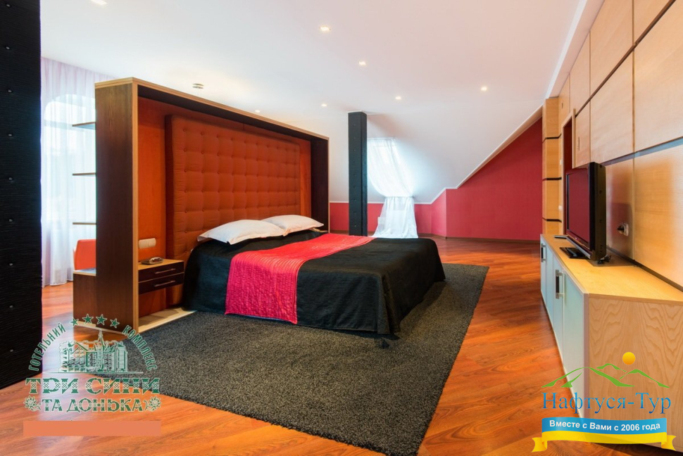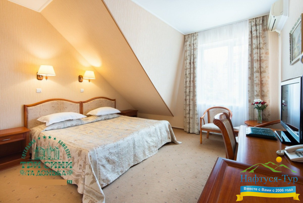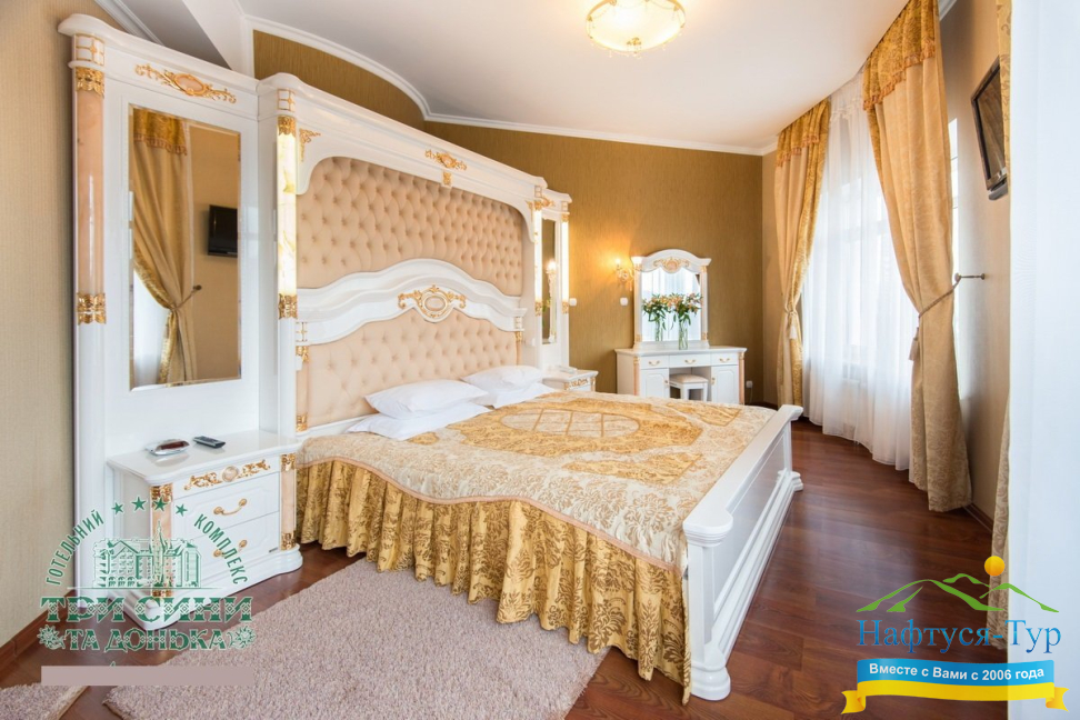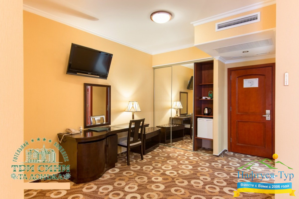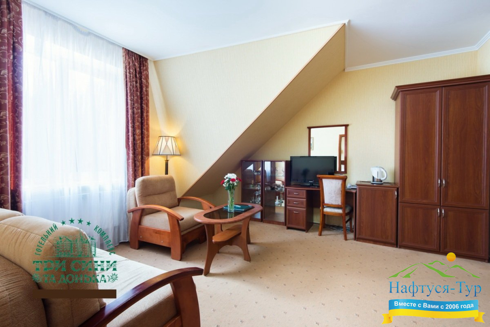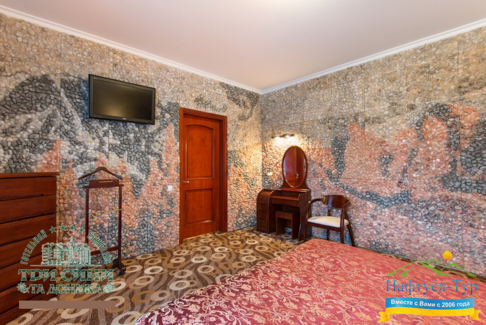 Курортный комплекс «Три Сини та Донька 4*» – наиболее известная и популярная здравница Сходницы. Благодаря большому выбору категорий номеров в санатории можно отдыхать и проходить курс лечения как на среднем, так и на элитном или премиальном уровне.