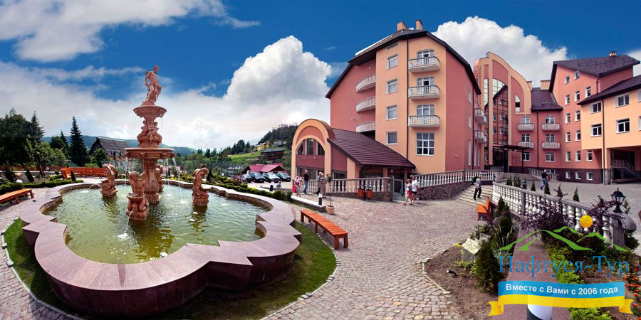 Этот комплекс выбрали с надеждой получить хороший полноценныЙ отдых и поправить своё драгоценное здоровье. Интерьер и экстерьер шикарный. Отель расположен в живописном месте, с двух сторон красивейший вид на горы, территория позволяет прогуляться и побегать детям.