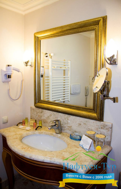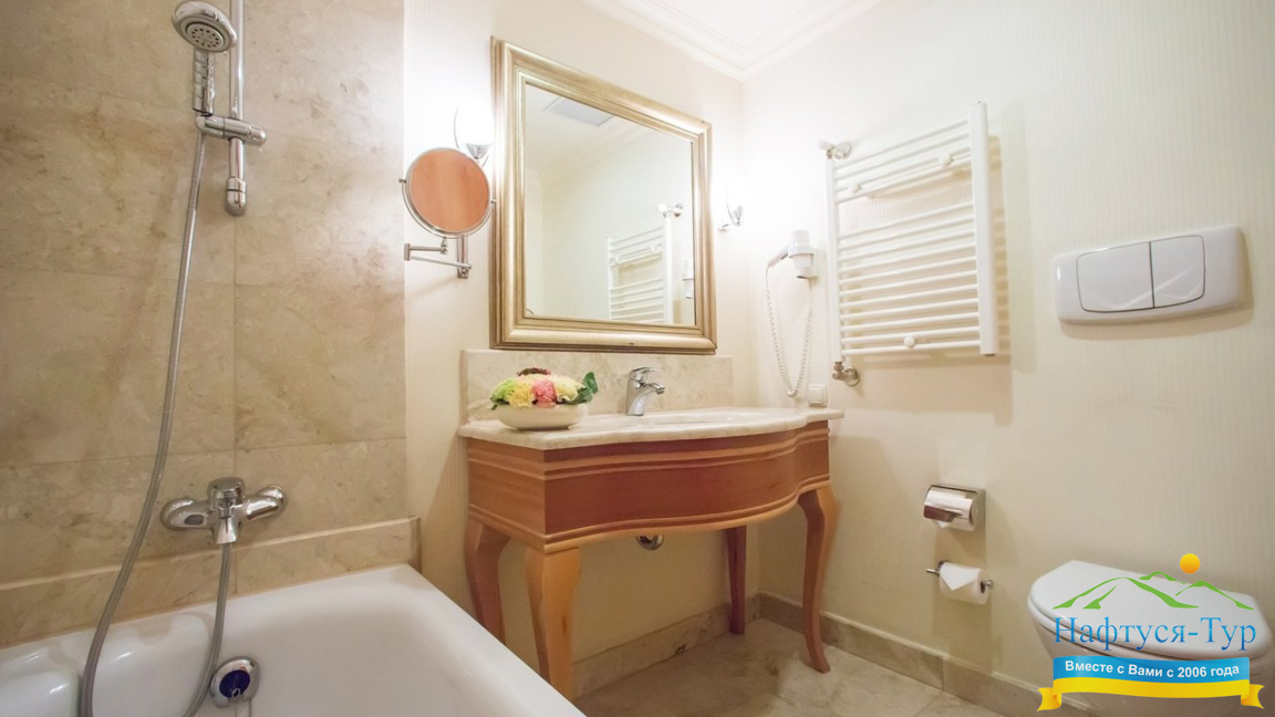 - ванна, фен, халат, косметический набор
