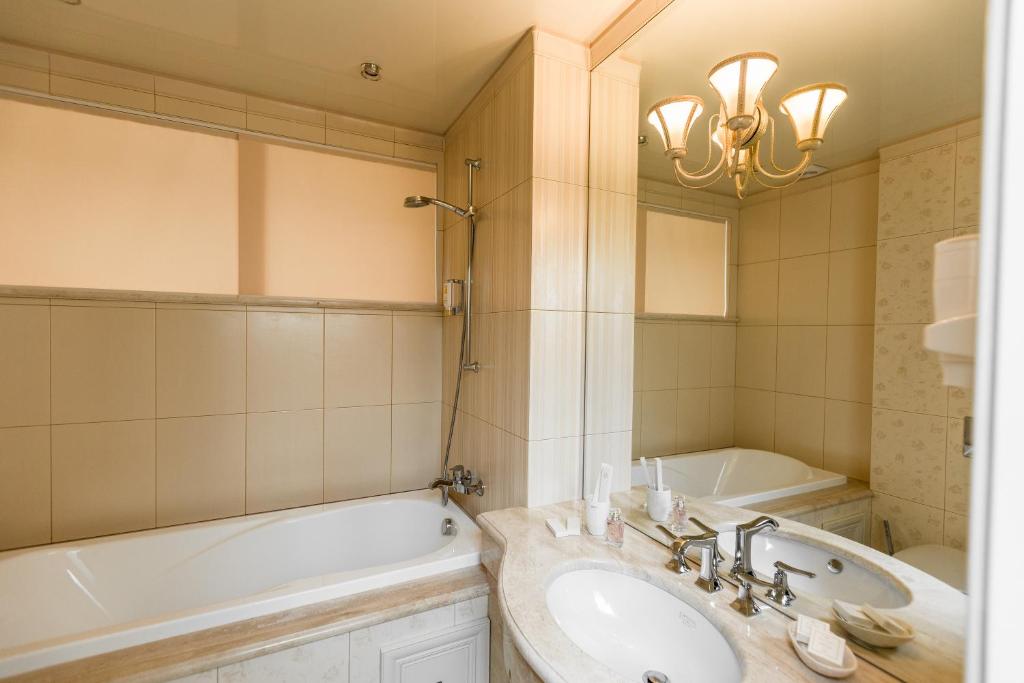 В ресторане отеля подаются блюда украинской и европейской кухни, а также диетические и вегетарианские меню. Гости могут заказать завтраки и ужины в номер, а также насладиться коктейлями и другими напитками в лобби-баре.
