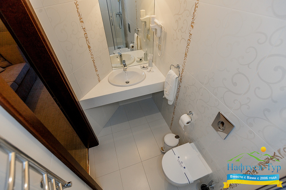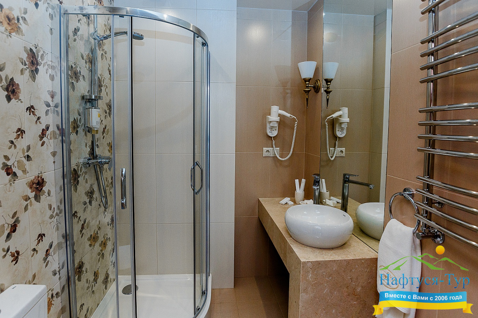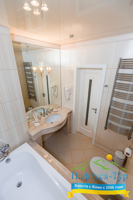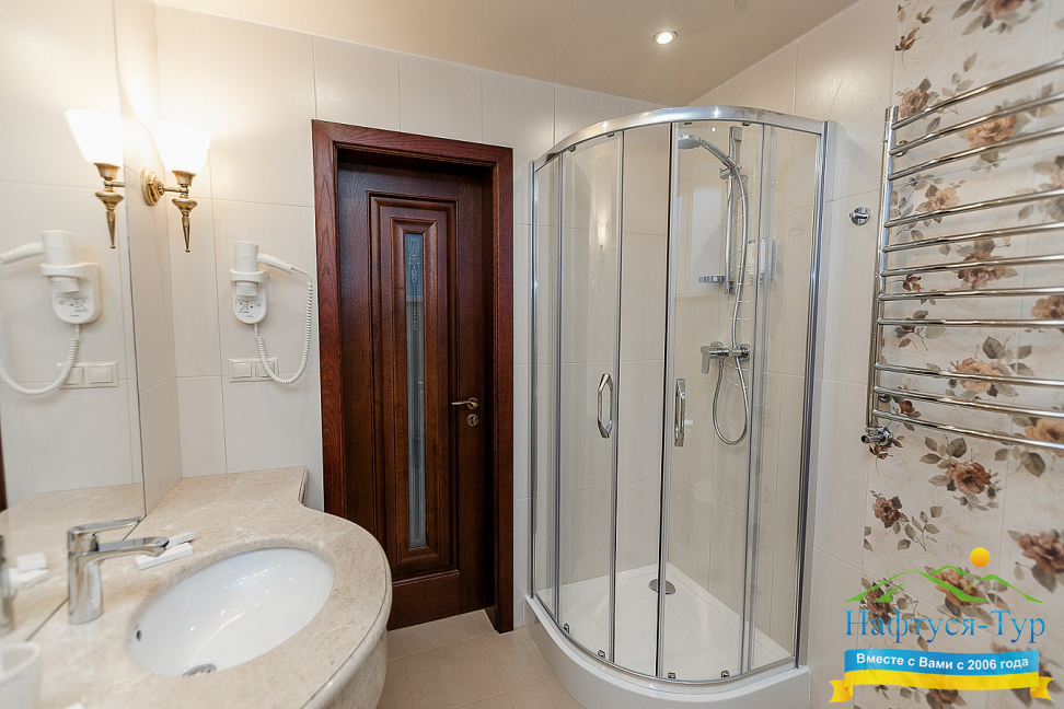 Ванная комната: душевая кабина , набор полотенец , косметический набор , фен