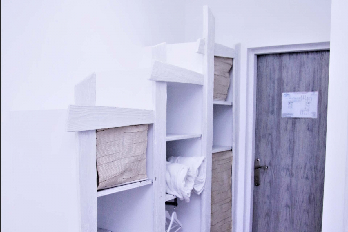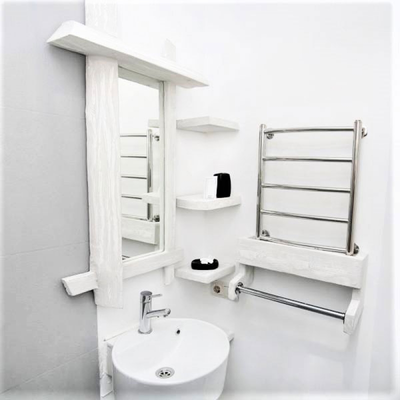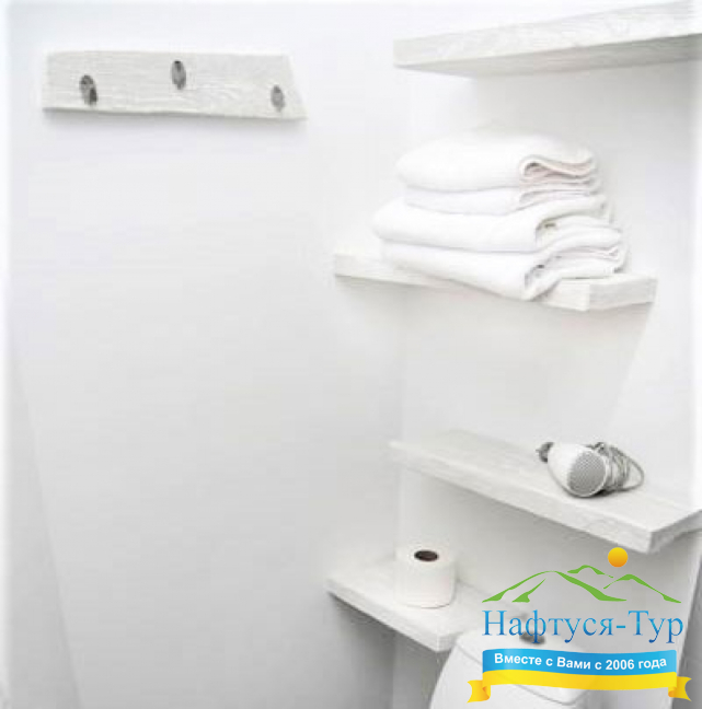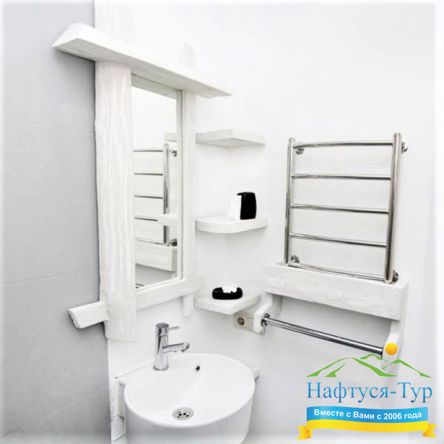 Ванная комната: душевая кабина , фен , халат , косметический набор