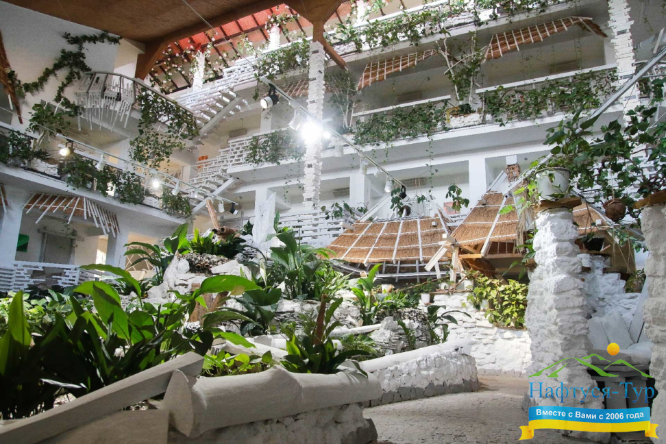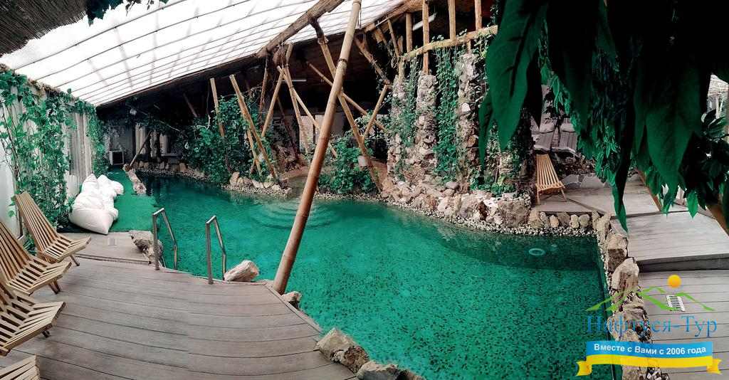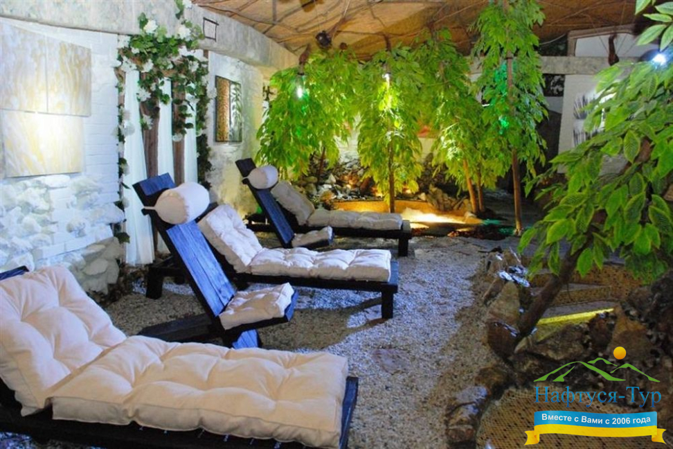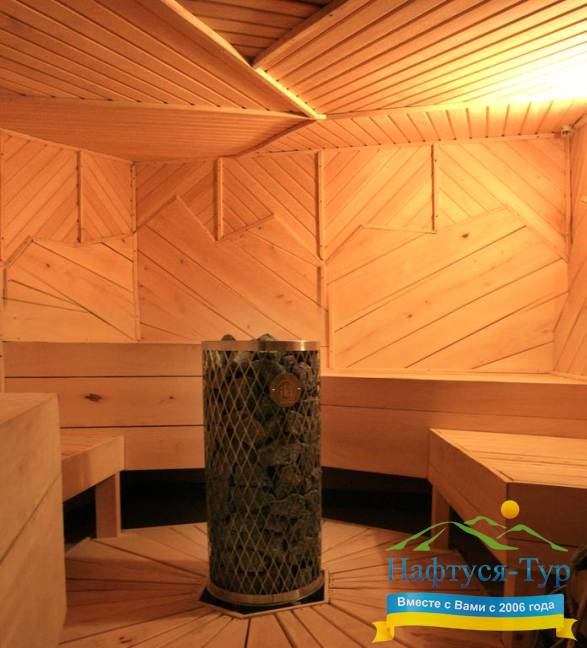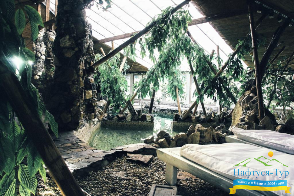 • Переступив порог СПА центра, вы попадаете на дикий остров с просторным бассейном, джакузи с гидро и аэромассажем, сауной, римской парной с ароматами карпатских трав, соляной пещерой, комнатами для ароматерапии и массажными комнатами.