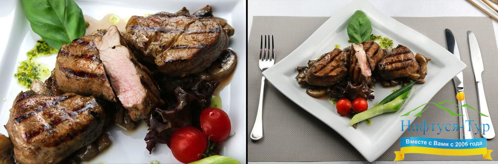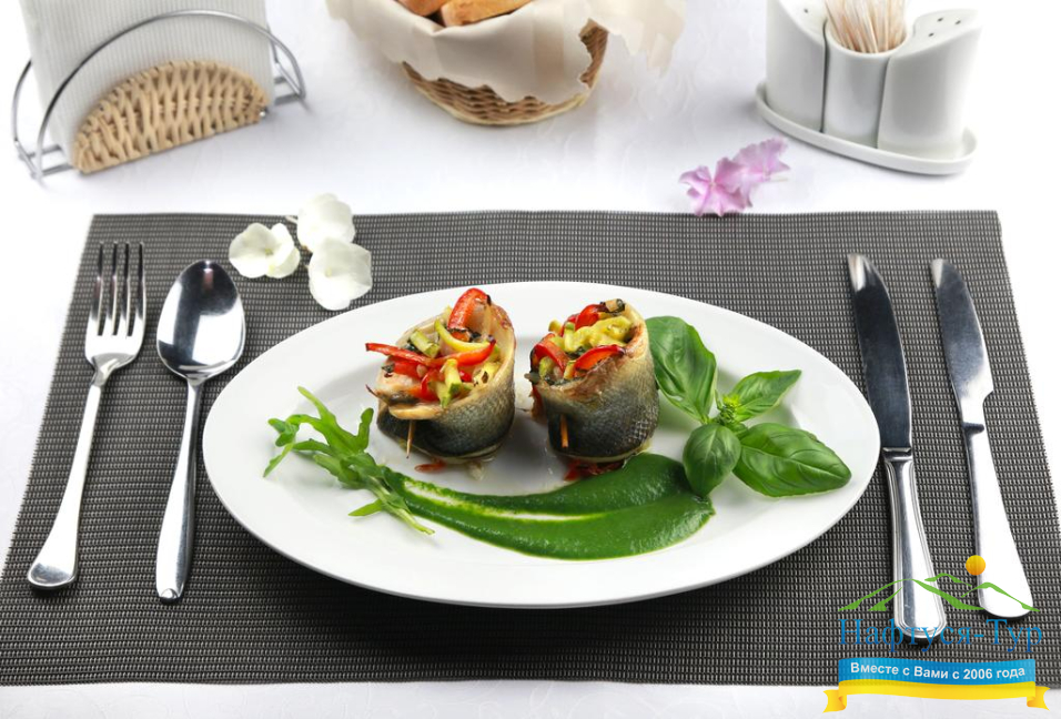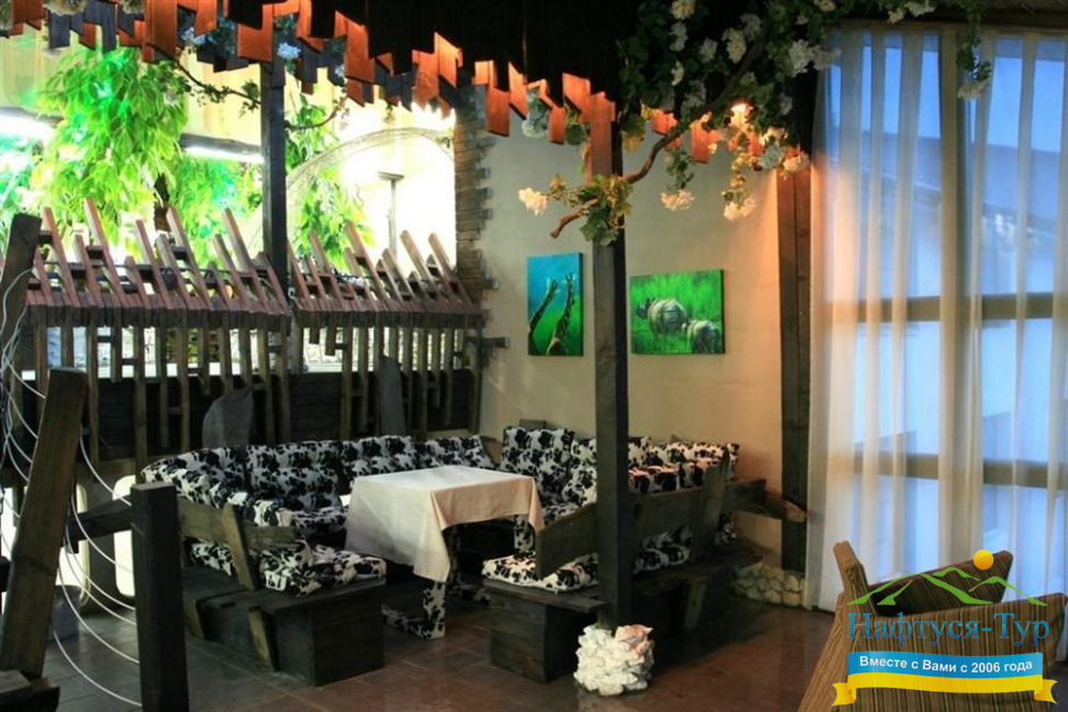 В ресторане с летней террасой спа-отеля "Хижина" подают блюда украинской и европейской кухни. Коктейли можно заказать в баре отеля.