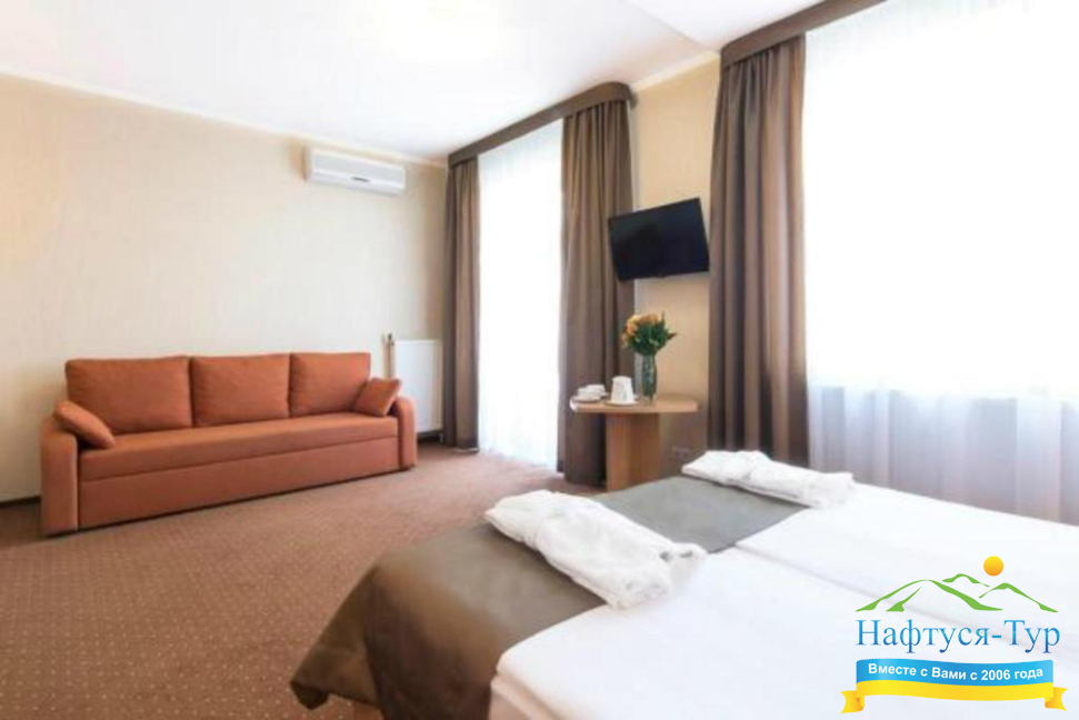 Расположение 5 мин. пешком до бювета №1, 5 мин. пешком до офиса «НАФТУСЯ-ТУР»