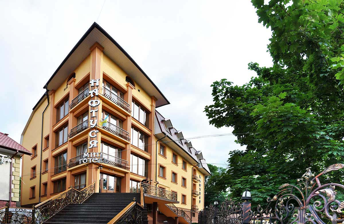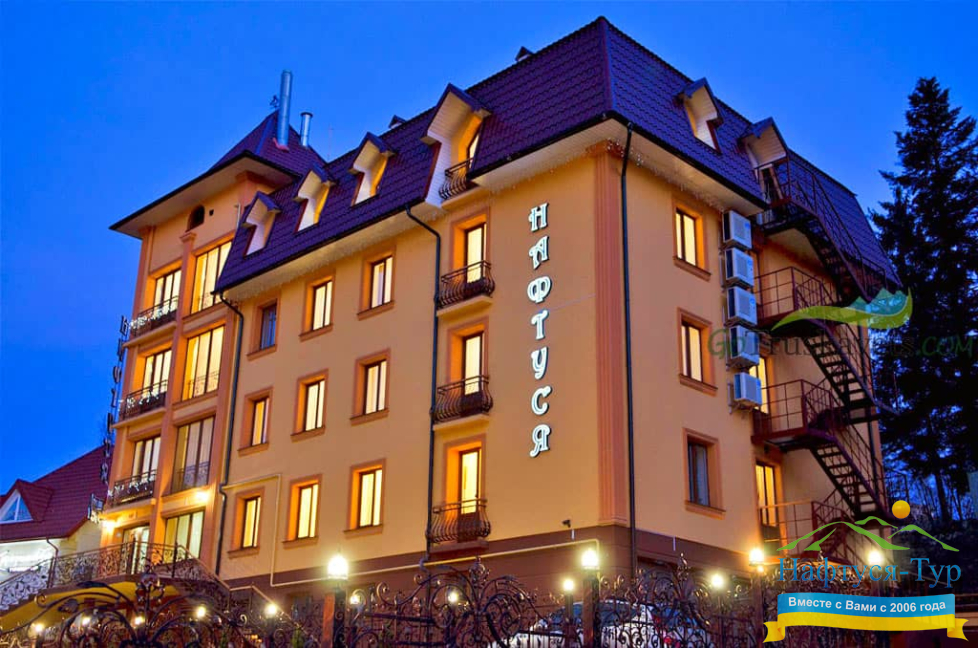 Отель «Нафтуся» расположен в зеленой рекреационной зоне города Трускавец, в 1 минуте ходьбы от минерального источника. К услугам гостей сауна, небольшой крытый бассейн рядом с сауной и бесплатный Wi-Fi.