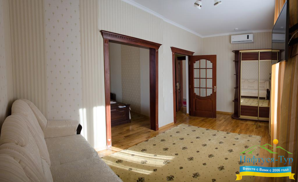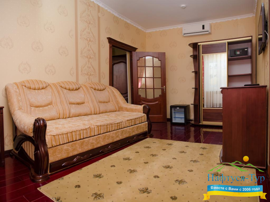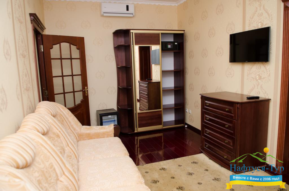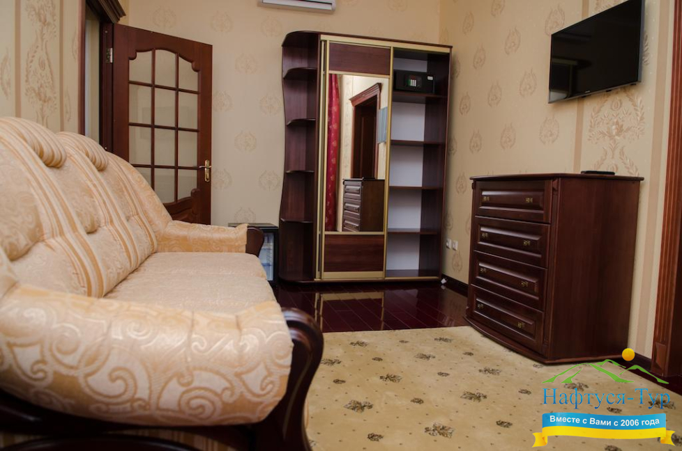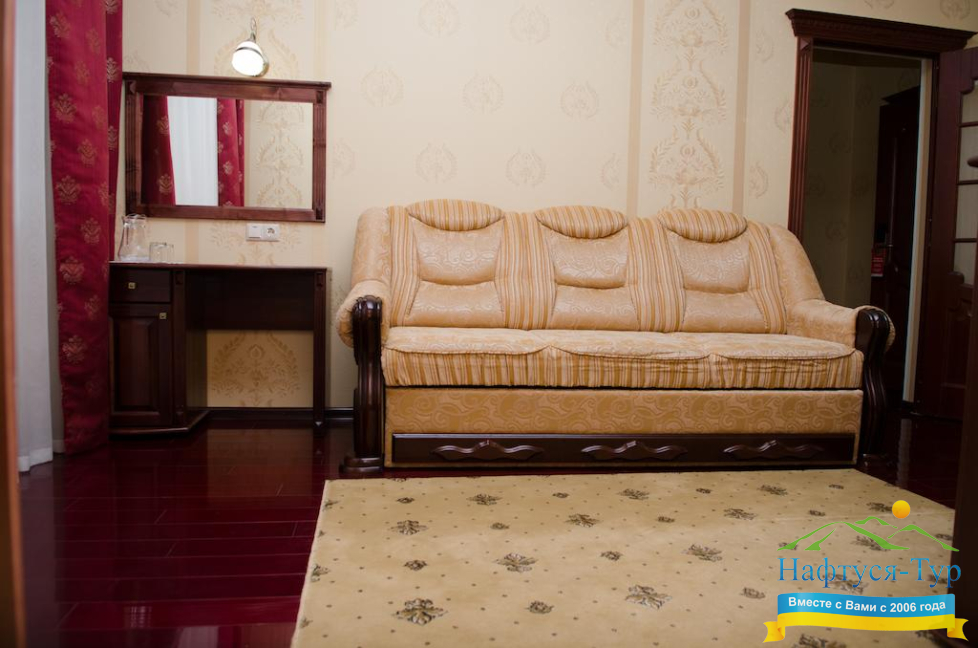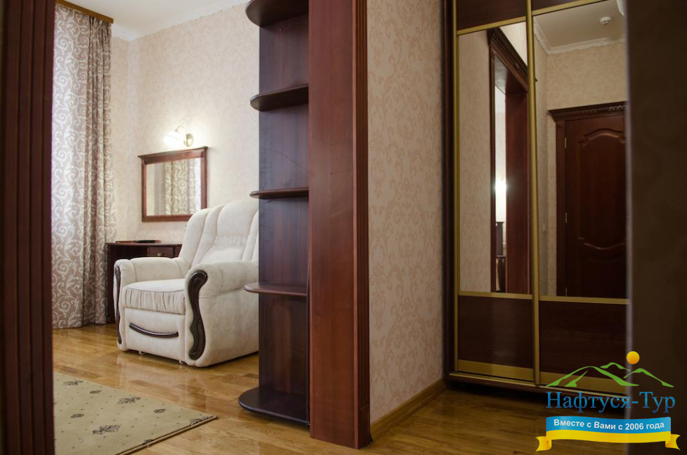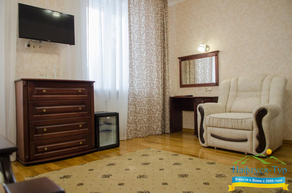 Расположение 2 мин. пешком до бювета №1, 10 мин. пешком до офиса «НАФТУСЯ-ТУР»