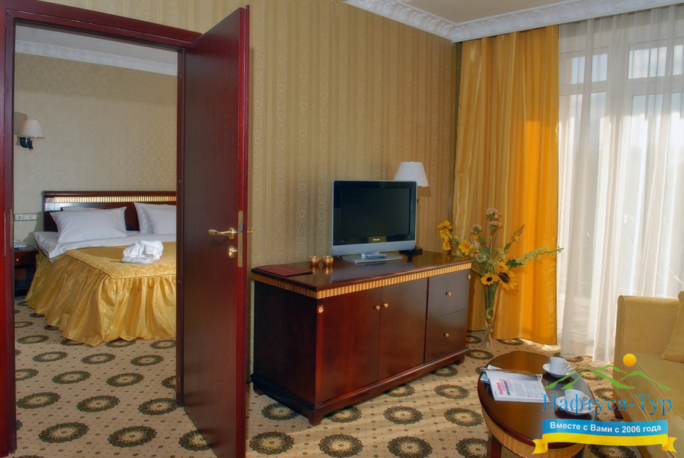 Расположение 5 мин. пешком до бювета №1, 1 мин. пешком до офиса «НАФТУСЯ-ТУР»