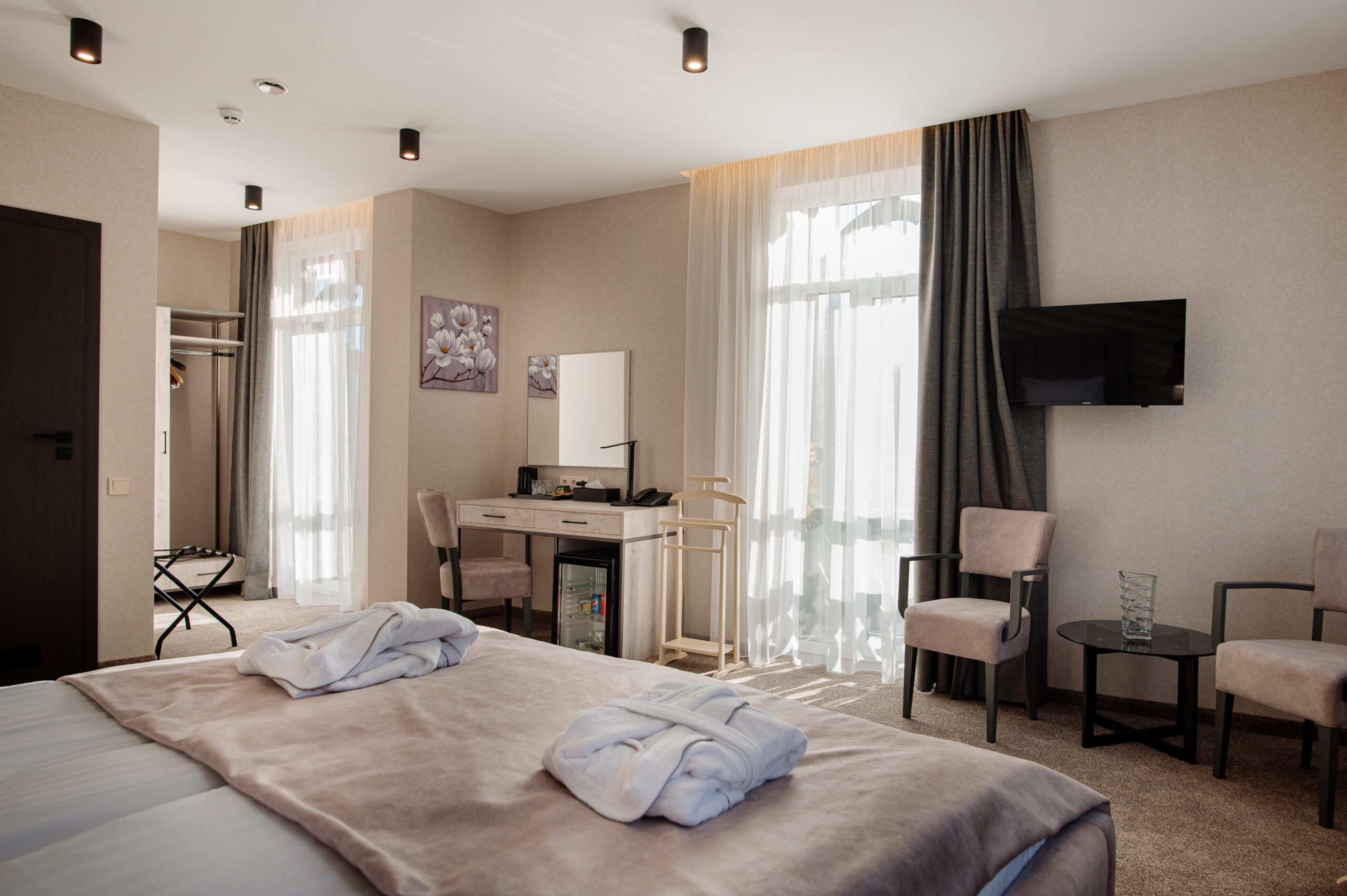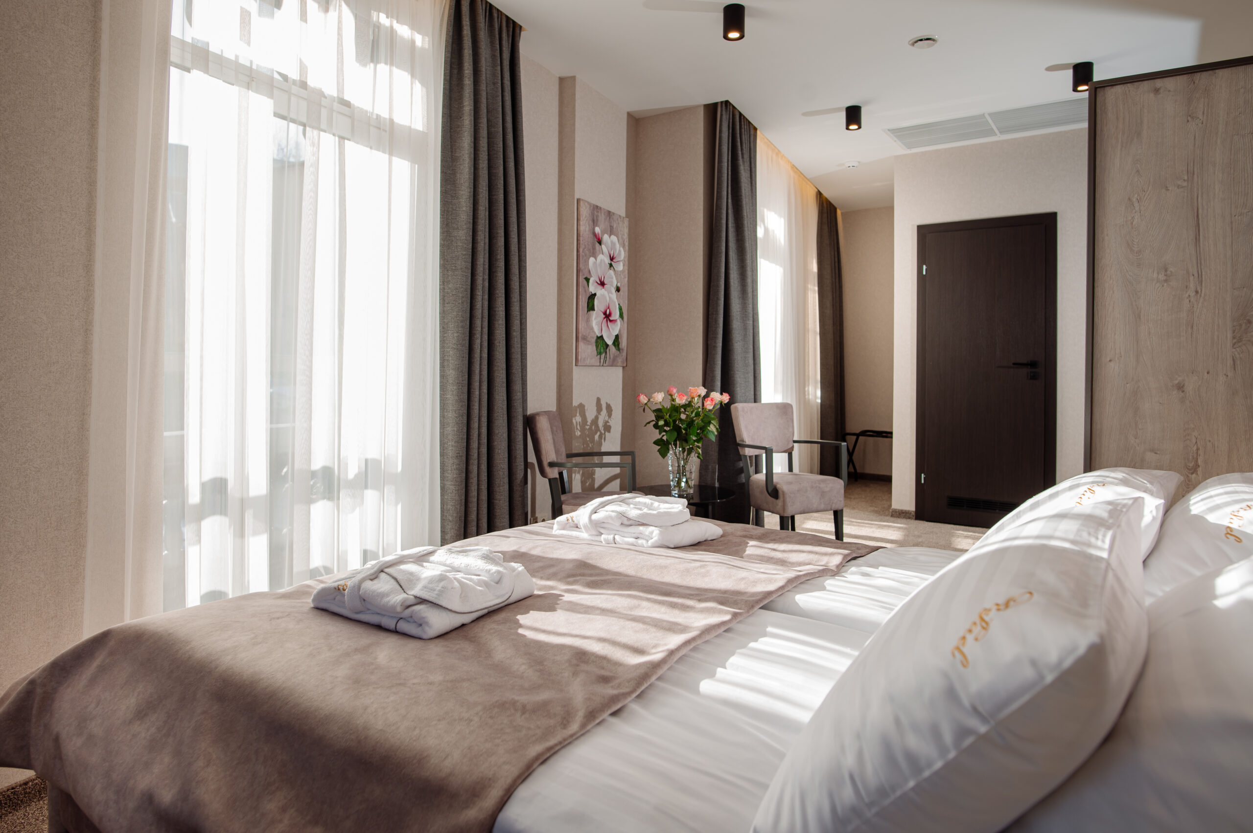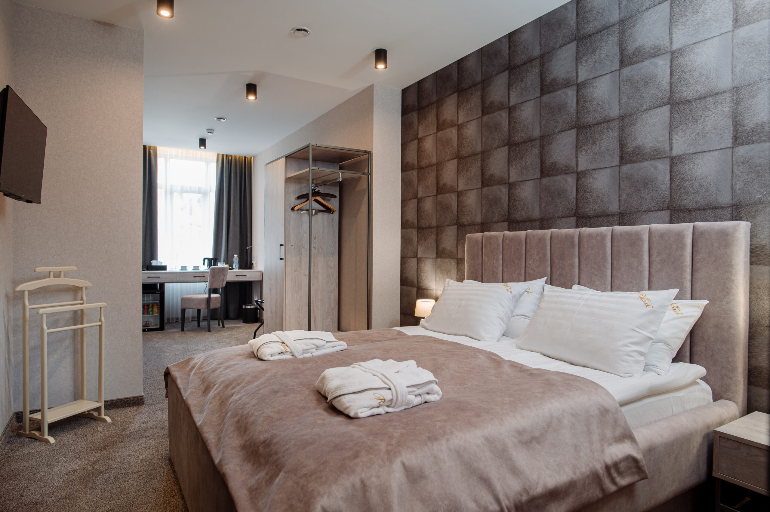 В отеле «Рафаель» представлены номера разных категорий - от стандартных до люксов, с различными планировками и интерьерами. В каждом номере есть все необходимое для комфортного проживания: удобная кровать, телевизор с плоским экраном, мини-бар, сейф, кондиционер и бесплатный Wi-Fi. Некоторые номера имеют балконы с живописным видом на горы.