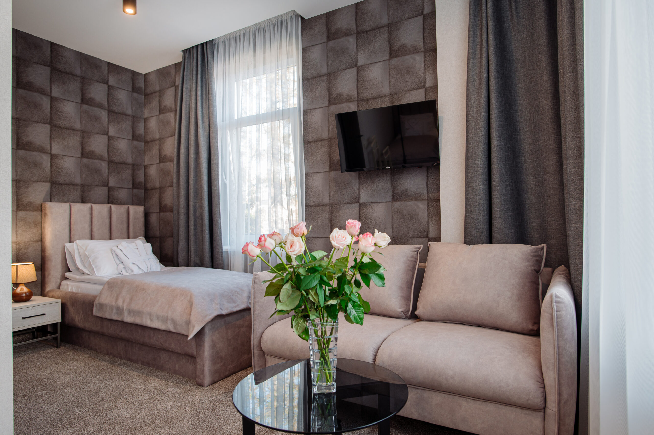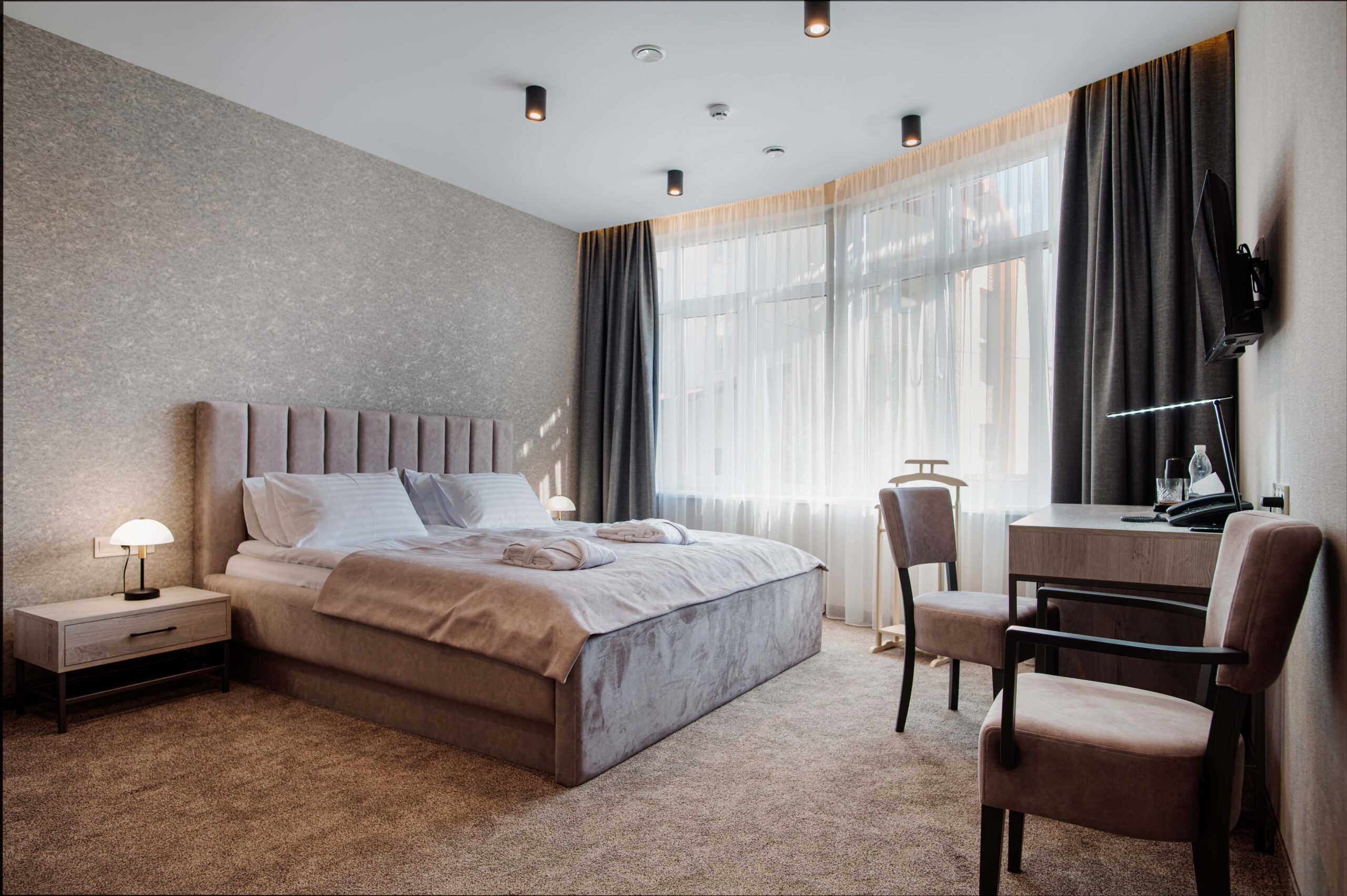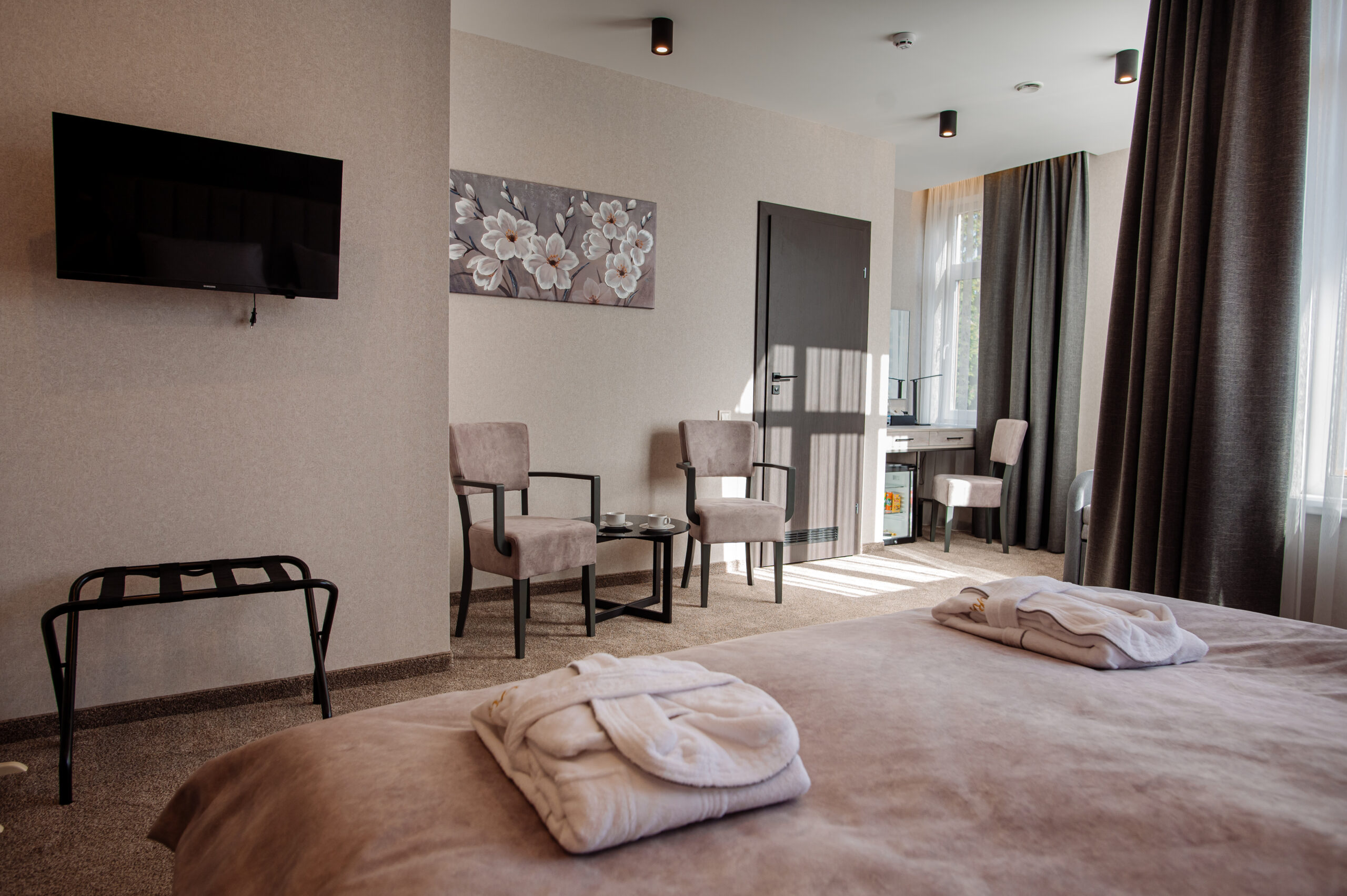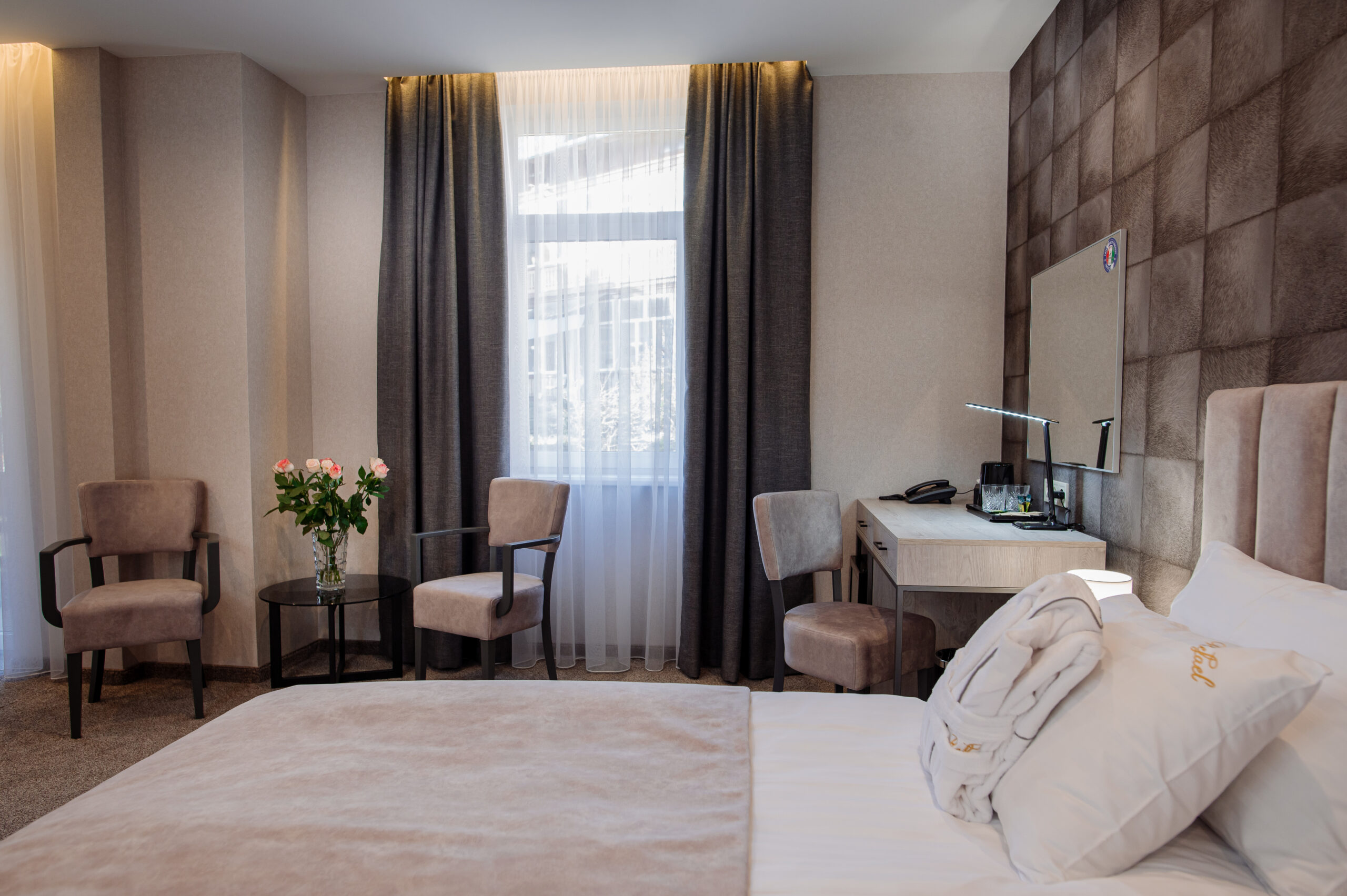 В отеле «Рафаель» представлены номера разных категорий - от стандартных до люксов, с различными планировками и интерьерами. В каждом номере есть все необходимое для комфортного проживания: удобная кровать, телевизор с плоским экраном, мини-бар, сейф, кондиционер и бесплатный Wi-Fi. Некоторые номера имеют балконы с живописным видом на горы.