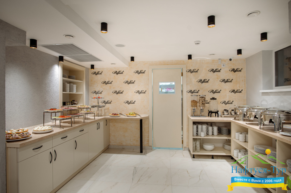 Кроме того, в отеле «Рафаель» есть ресторан, который предлагает богатый выбор блюд украинской и европейской кухни, а также бар, где гости могут насладиться напитками и закусками в уютной обстановке.