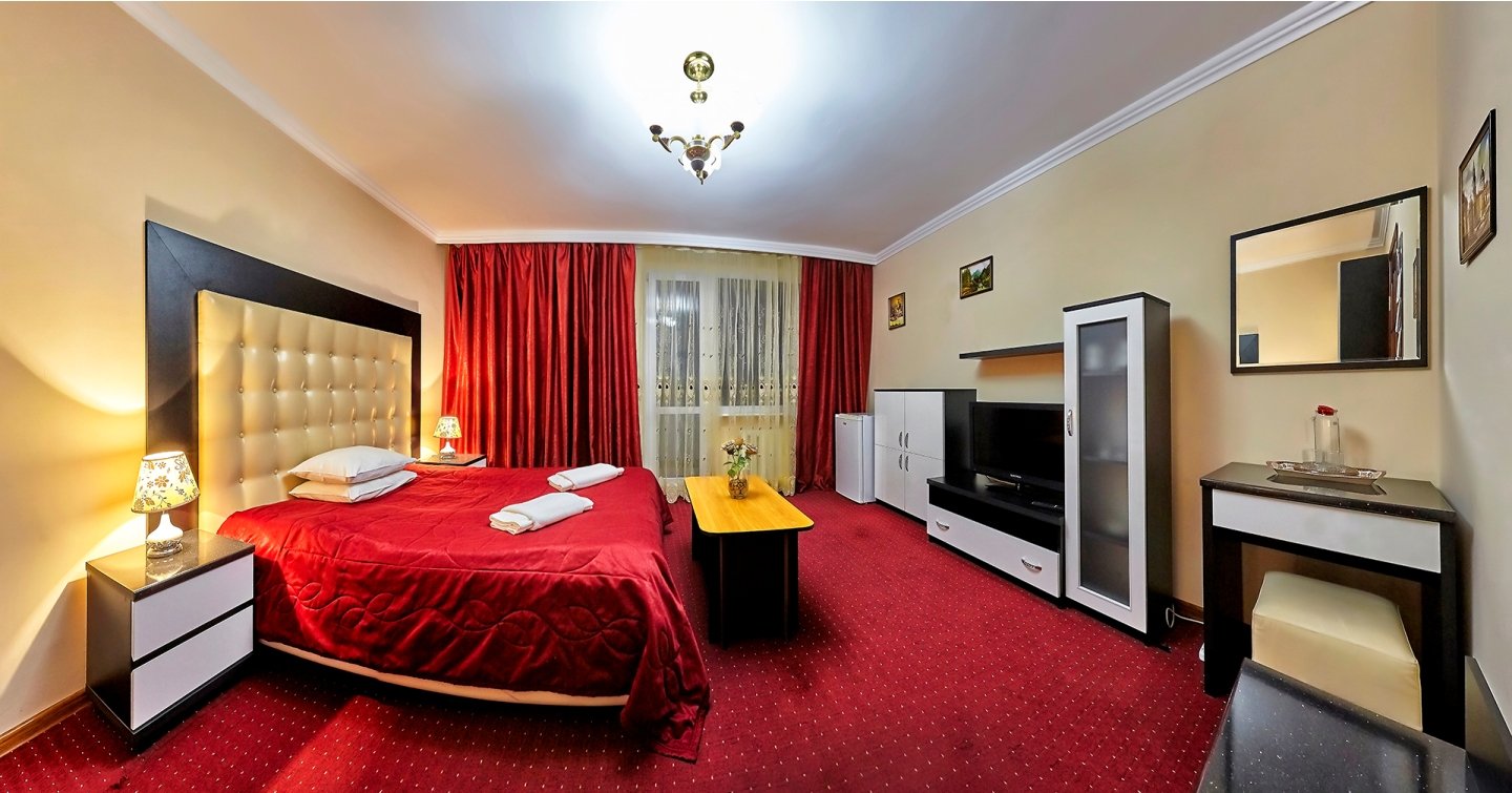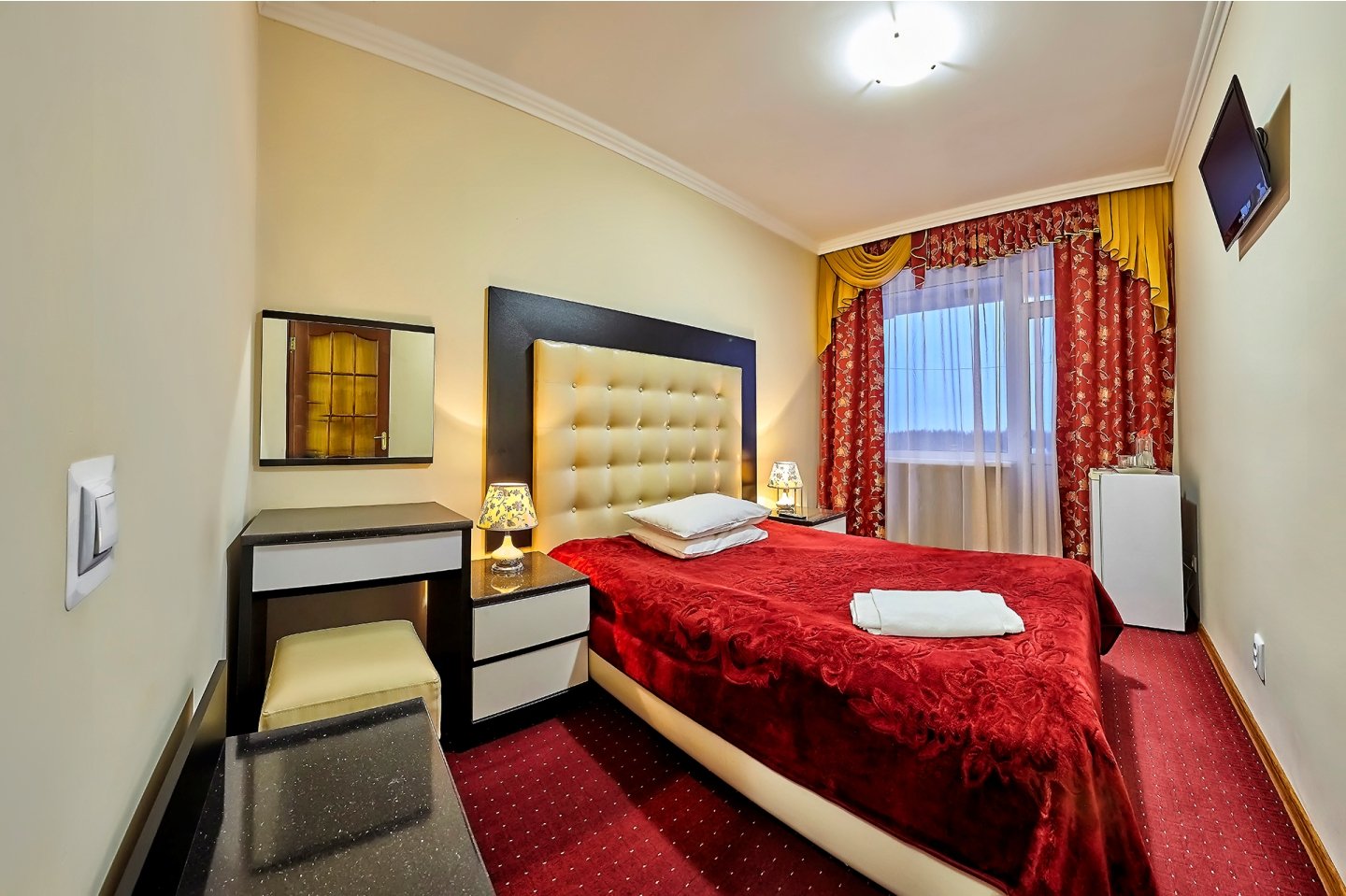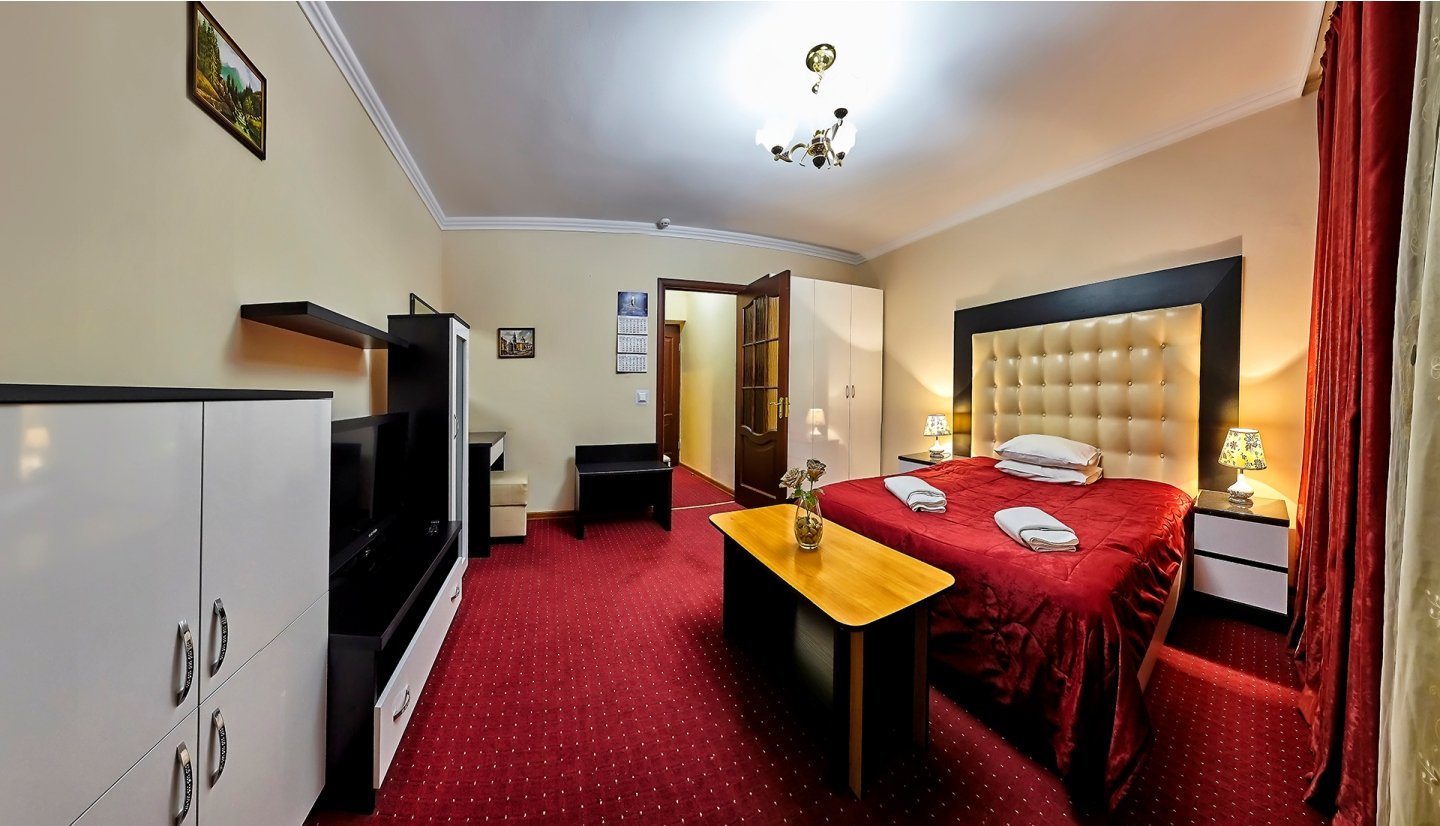 Санаторий предлагает своим гостям широкий выбор номеров: от стандартных до улучшенных категорий. Все номера оснащены удобной мебелью, телевизорами, Wi-Fi и ванными комнатами. Интерьеры выполнены в классическом стиле, создающем уютную и спокойную обстановку для отдыха.