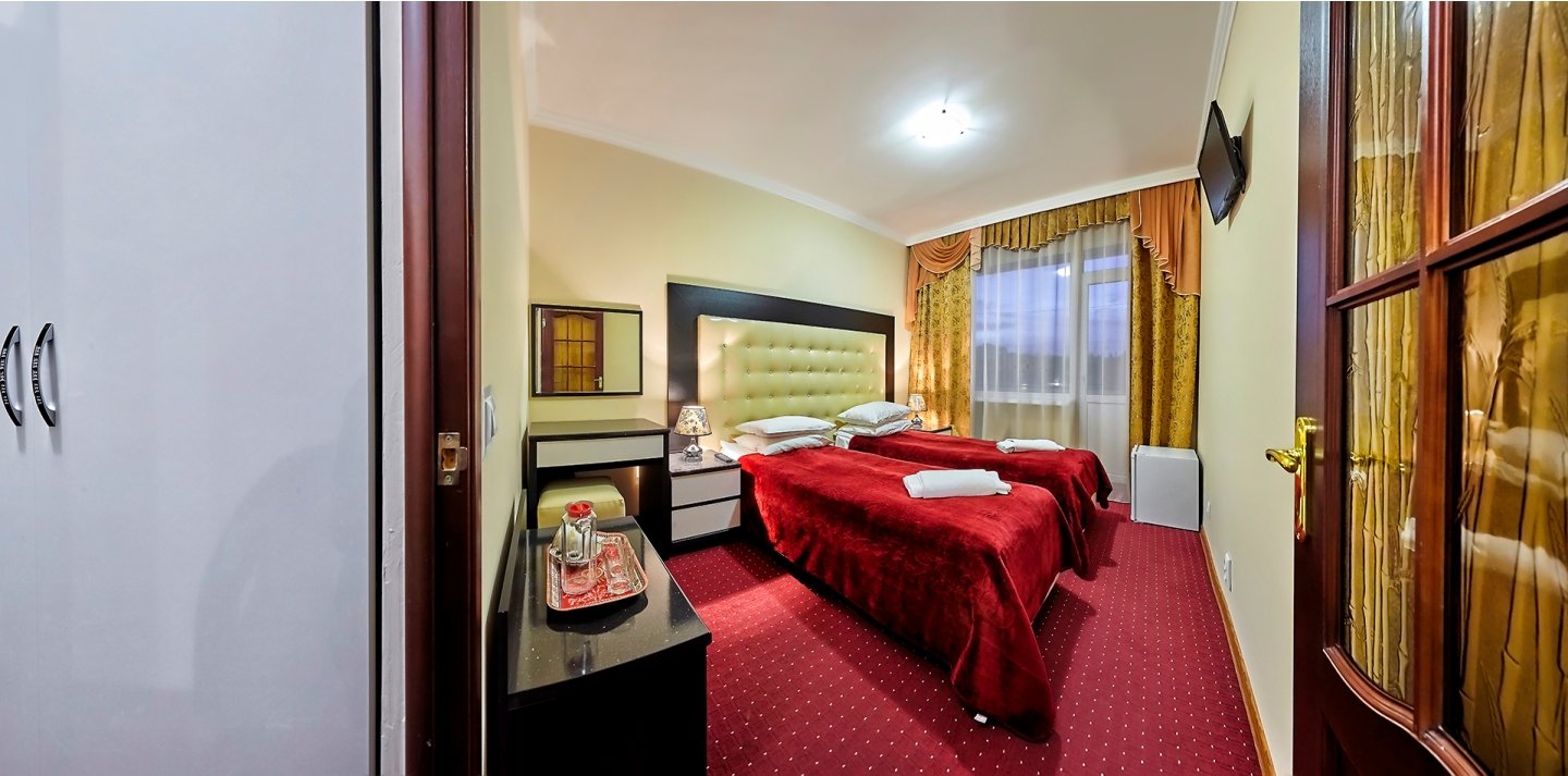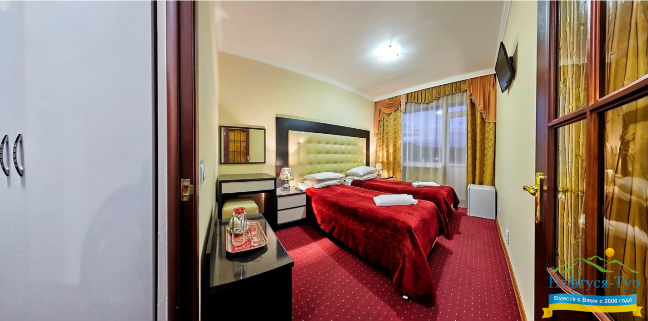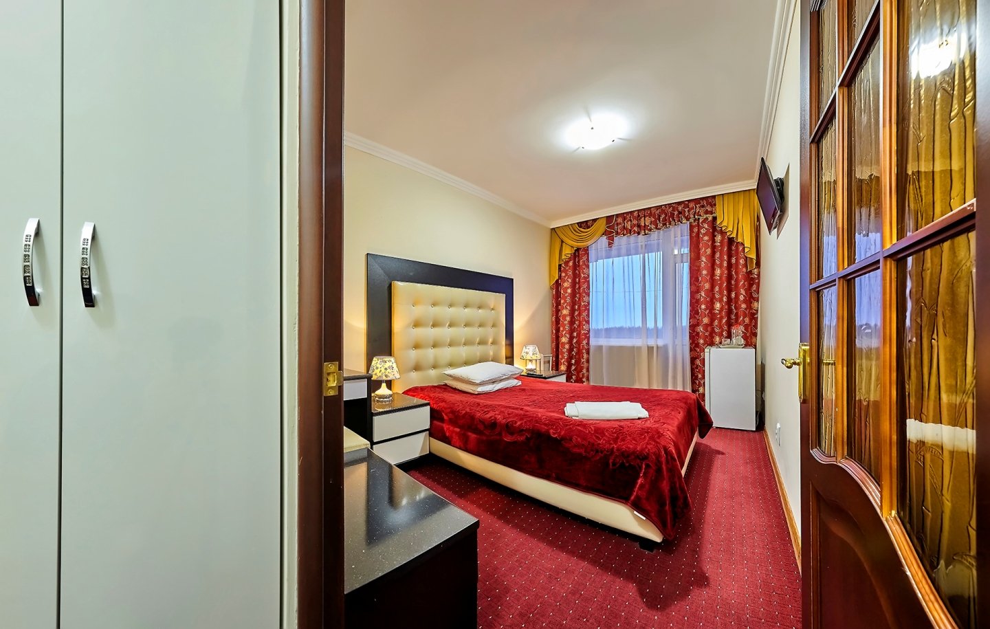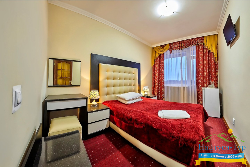Санаторий предлагает своим гостям широкий выбор номеров: от стандартных до улучшенных категорий. Все номера оснащены удобной мебелью, телевизорами, Wi-Fi и ванными комнатами. Интерьеры выполнены в классическом стиле, создающем уютную и спокойную обстановку для отдыха.