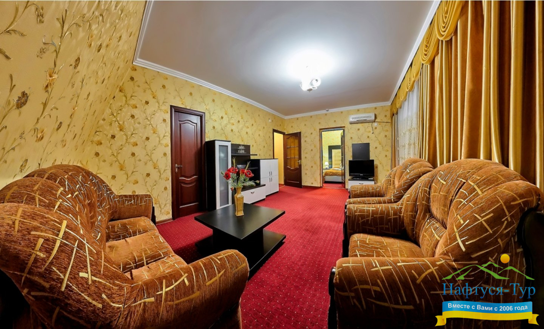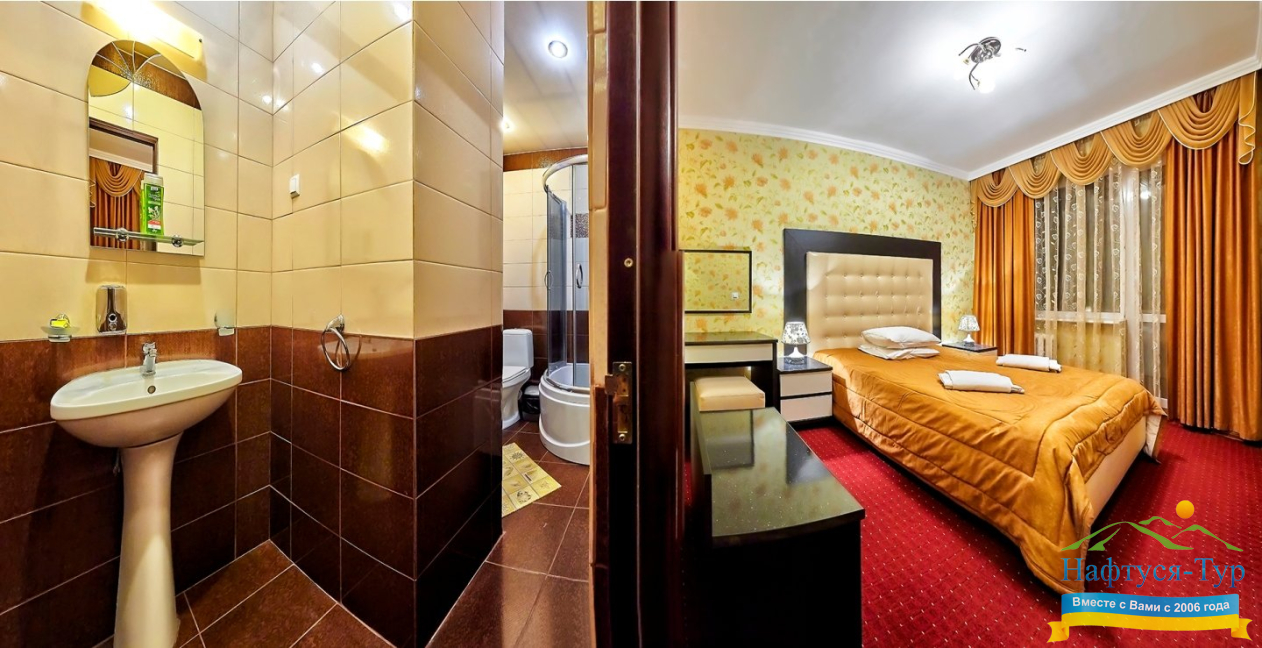 Расположение 25 мин. пешком до бювета №1, 30 мин. пешком до офиса «НАФТУСЯ-ТУР»