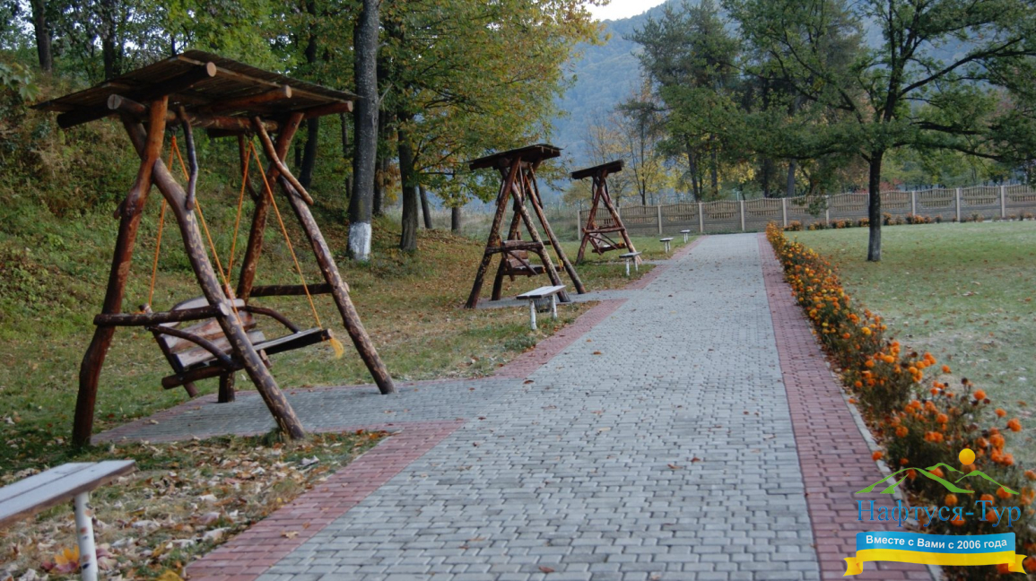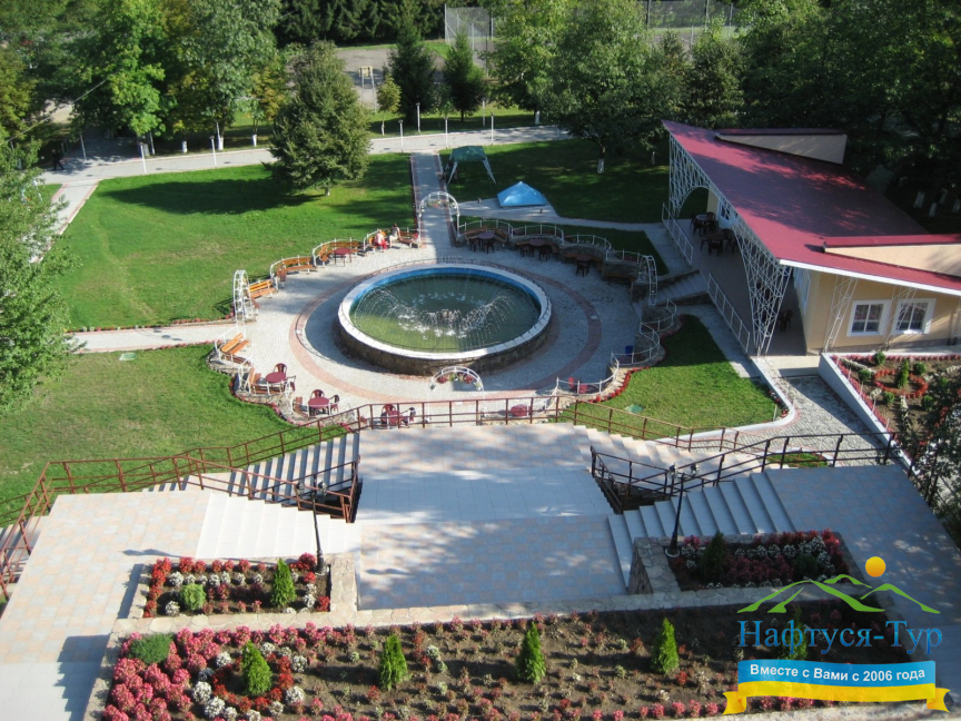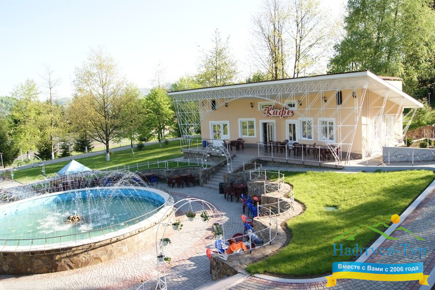 На территории санатория «Боржава» к услугам гостей предлагаются терраса с фонтаном, беседки, мангалы и барбекю.