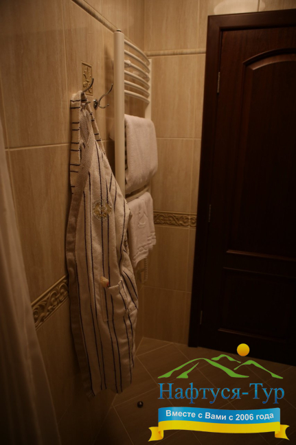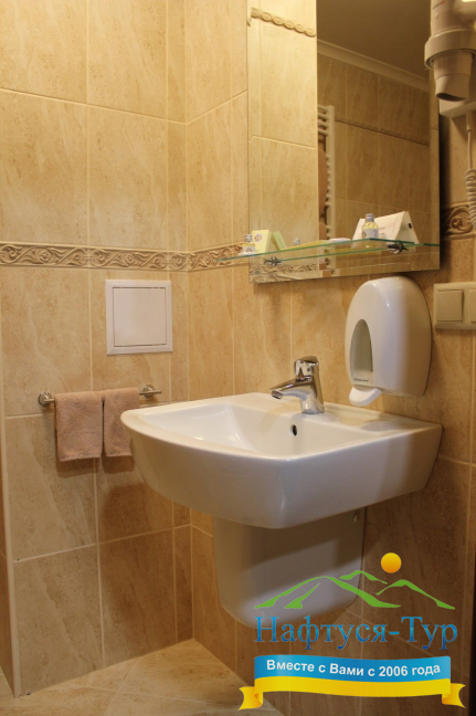 - душевая кабина, набор полотенец, фен