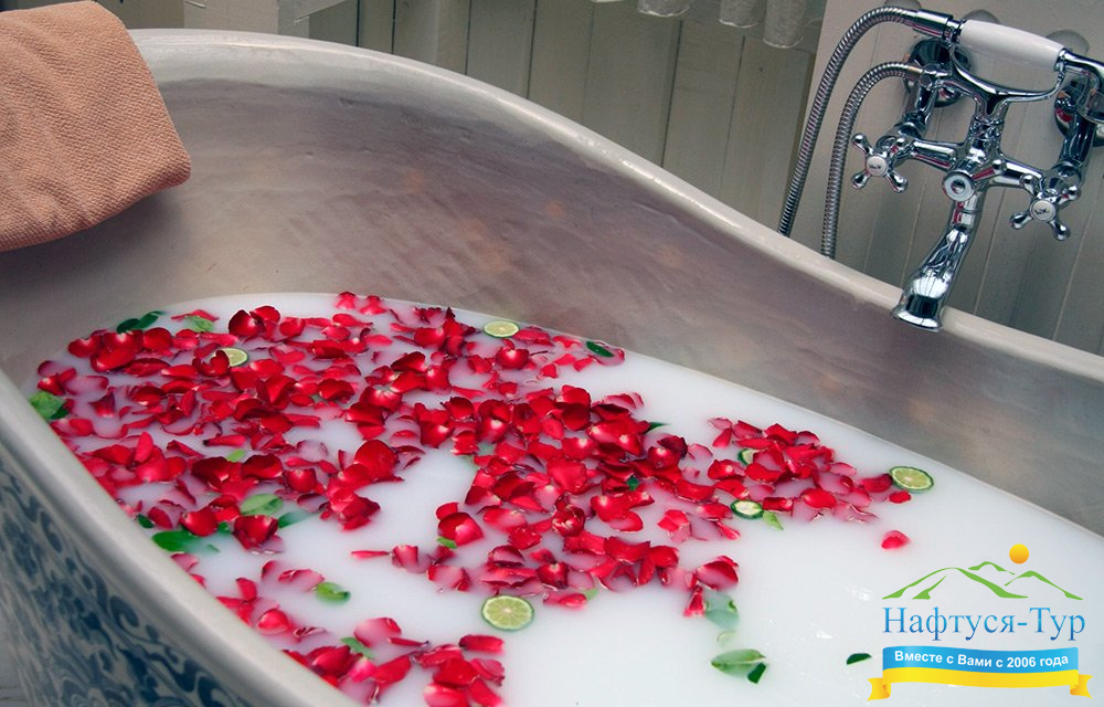 СПА-процедуру с более чем красноречивым названием Ванна Клеопатры следует признать не только очень эффективной и популярной, но и легендарной. Да, царица Древнего Египта, согласно многочисленным сохранившимся источникам, активно занималась сохранением своей молодости и красоты, при этом одним из главных средств в её арсенале были продолжительные водные процедуры, когда в воду добавлялись молоко и мед. Сегодня такую методику мы и называем Ваннами Клеопатры, причем при их проведении могут использоваться не только молоко и мед, но и многое дополнения – оливковое масло, растительные, витаминные, минеральные компоненты и так далее. Как мы знаем, реальное улучшение состояния кожи наблюдается при глубинном благотворном воздействии на организм, соответственно, Ванны Клеопатры также нередко назначают и при лечении разного рода заболеваний во многих санаториях нашей страны.