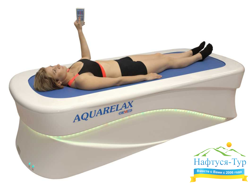 Акварелакс – сравнительно недавно появившаяся разновидность гидромассажа, которой свойственен ряд существенных преимуществ. Во-первых, этот водный массаж является бесконтактным, соответственно, ввиду отсутствия необходимости погружения тела пациента в жидкость снимается целый ряд противопоказаний и резко расширяется применимость методики, которая может применяться и в санаториях для лечения, общего укрепления организма, и в СПА-салонах. Избежать при проведении процедур Акварелакса контакта тела человека с жидкостью удается благодаря тому, что в этой аппаратуре снабженная форсунками и заполненная жидкостью ванна, накрыта очень прочной тонкой пленкой. Пациент ложится на эту пленку, а форсунки по специально подобранной программе обеспечивают гидромассаж различных участков тела.